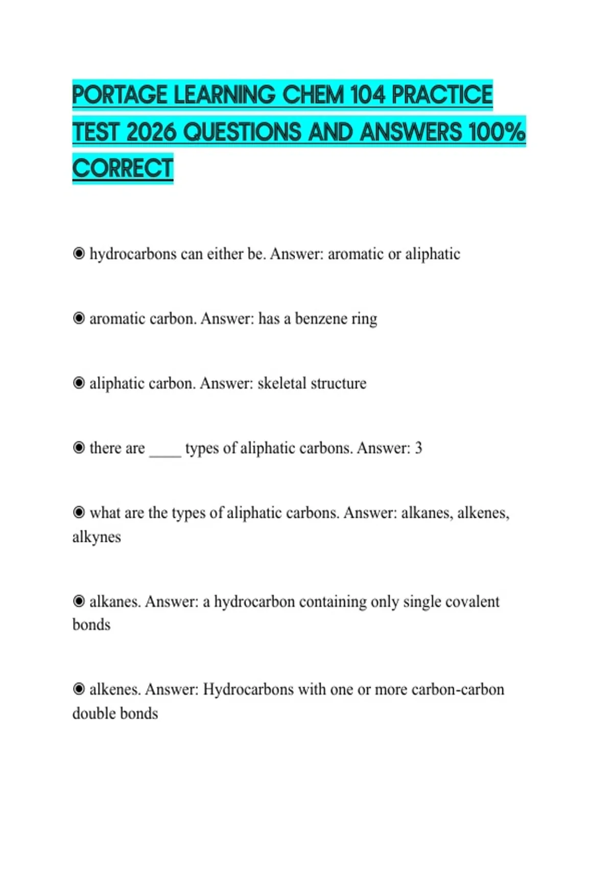 PORTAGE LEARNING CHEM 104 PRACTICE TEST 2026 QUESTIONS AND ANSWERS 100% CORRECT