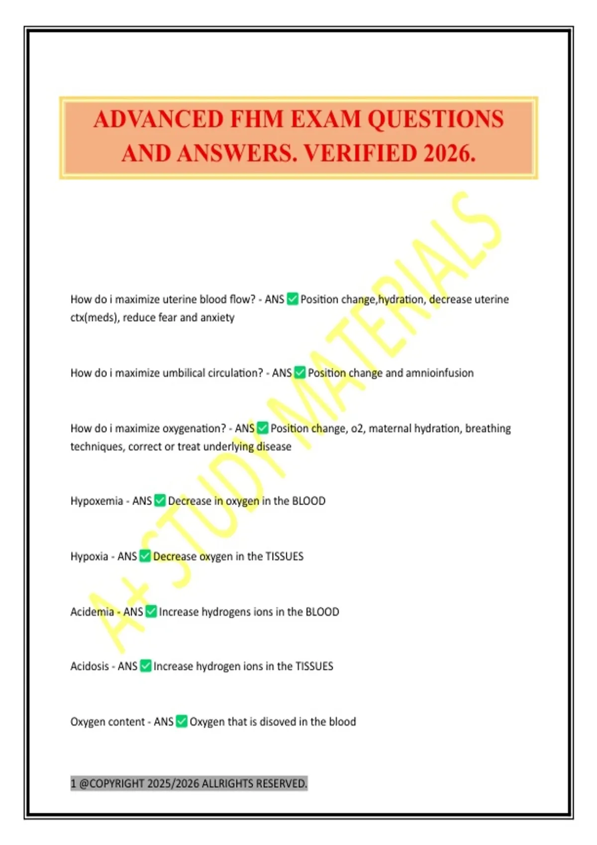 ADVANCED FHM EXAM QUESTIONS AND ANSWERS. VERIFIED 2026.