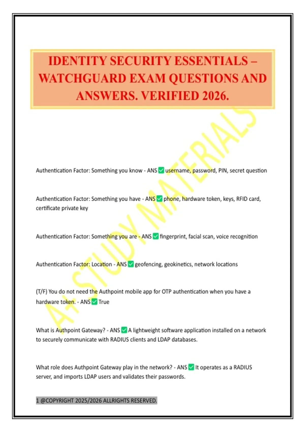 IDENTITY SECURITY ESSENTIALS – WATCHGUARD EXAM QUESTIONS AND ANSWERS. VERIFIED 2026.