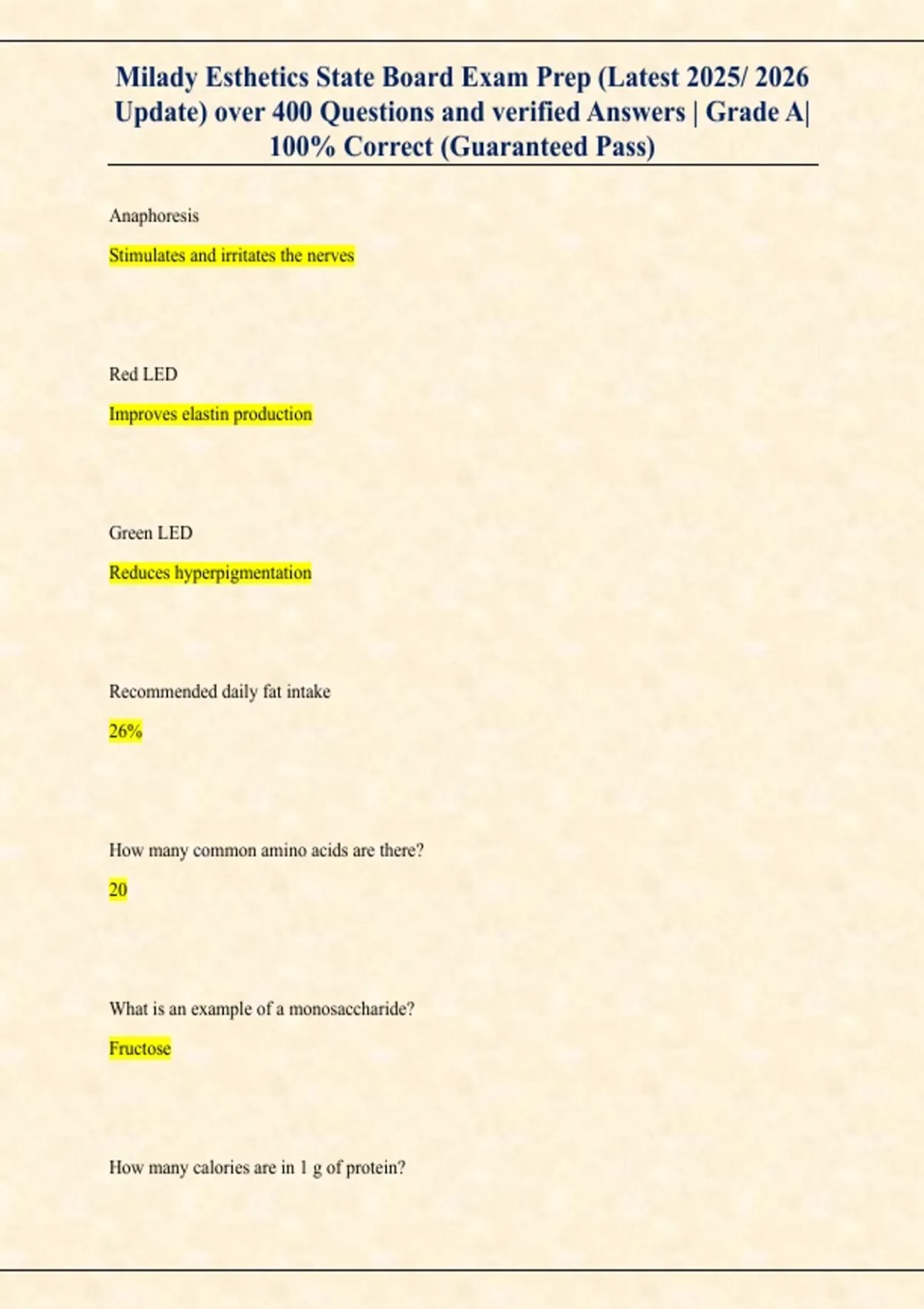 This document offers extensive Milady esthetics state board exam preparation with over 400 verified questions and answers. It covers skin histology, nutrition, ingredients, acne disorders, pigmentation, treatments, anatomy, and safety standards required for licensure.