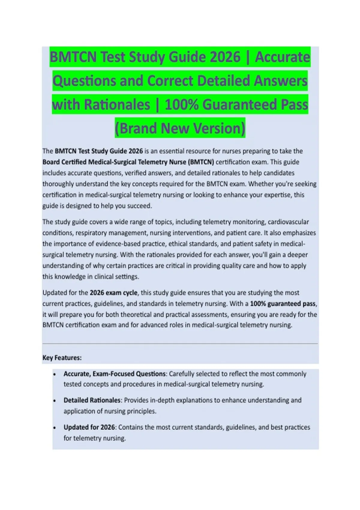 Board Certified Medical-Surgical Telemetry Nurse (BMTCN) certification exam. This guide