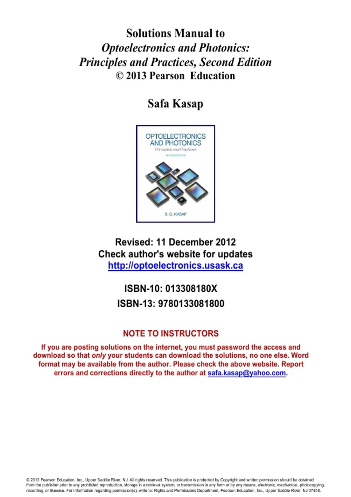 S.O. Kasap, Optoelectronics and Photonics: Principles and Practices, Second Edition, © 2013 Pearson Education