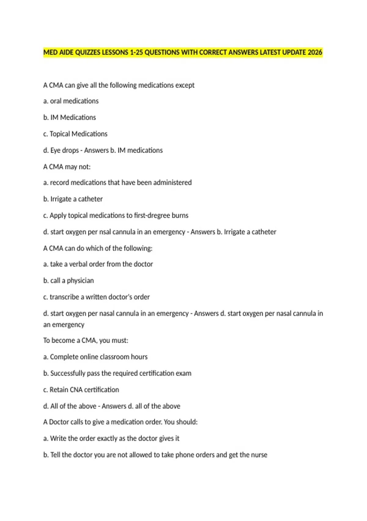 medication - Answers d. Observe and report ot the nurse any reactions or side effects a resident