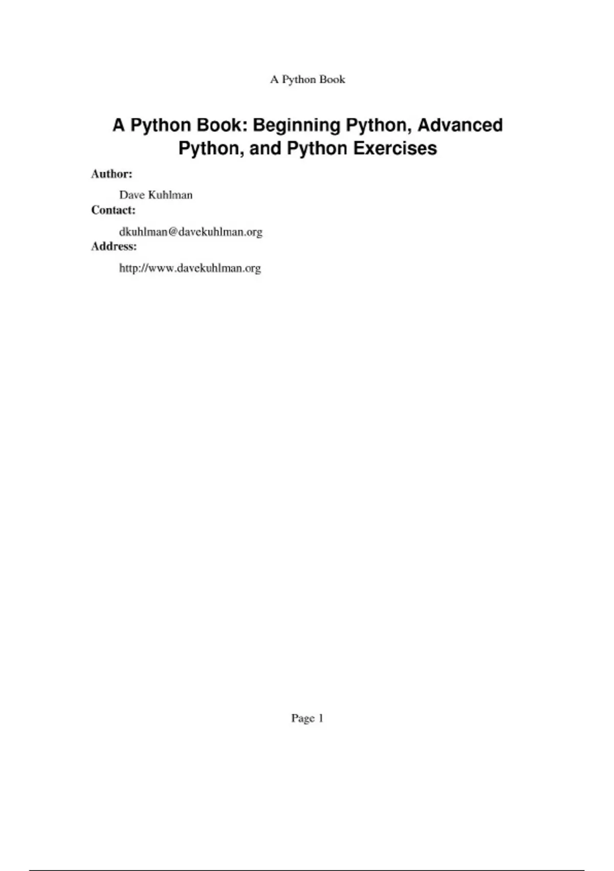 A Python Book: Beginning Python, Advanced Python, and Python Exercises