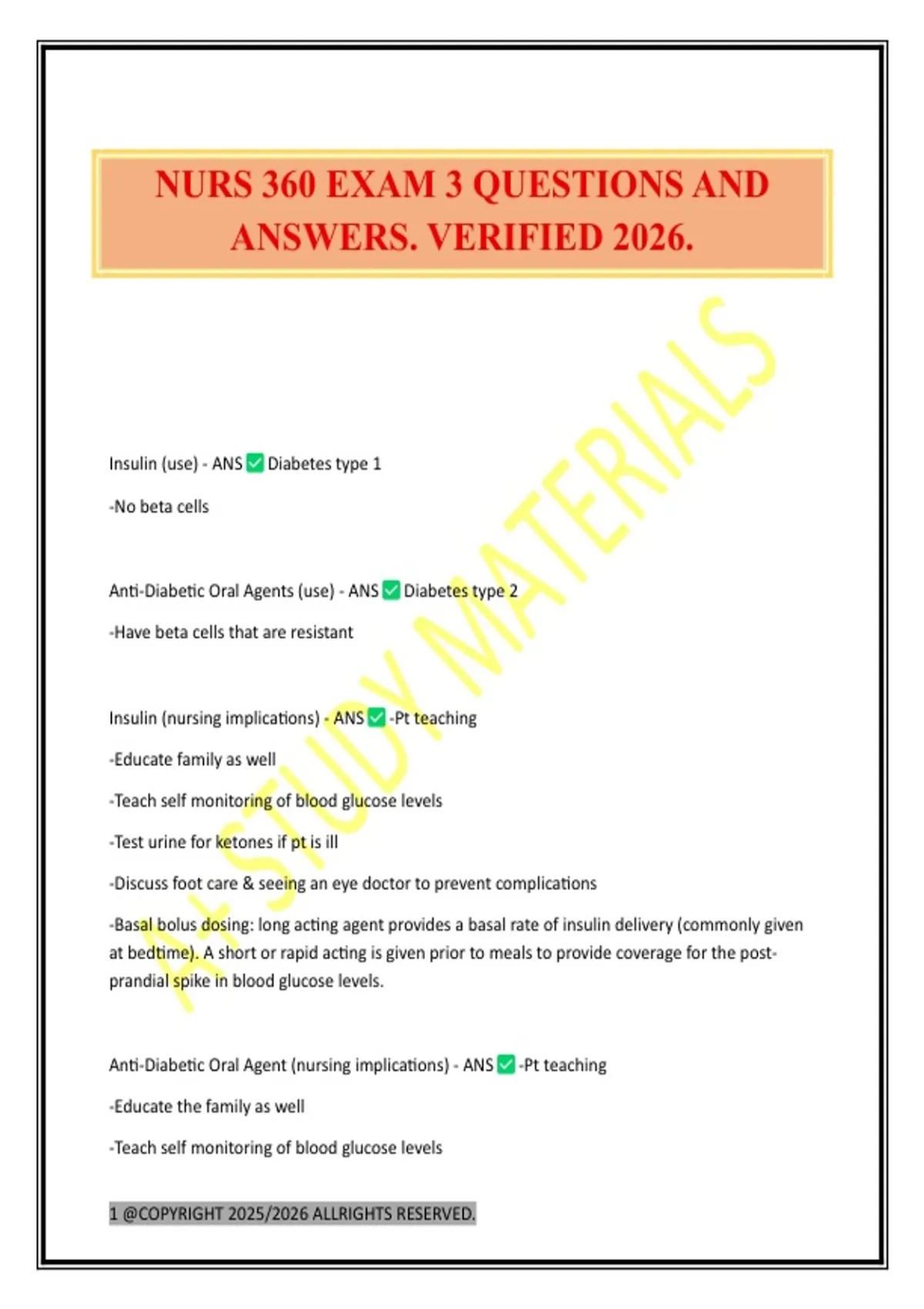 Anti-Diabetic Oral Agent (nursing implications) - ANS -Pt teaching