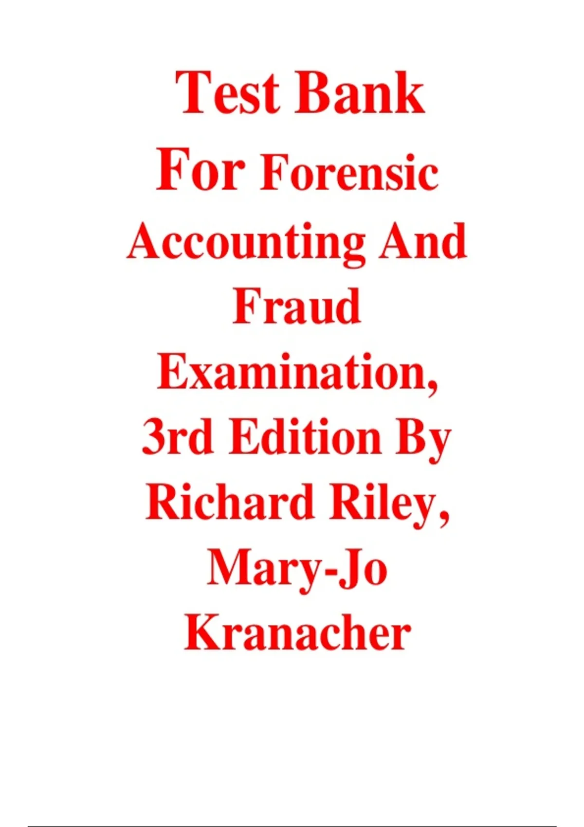 ,Test bank project for Forensic Accounting and Fraud Examination (2nd Ed.) by Mary-Jo Kranacher and Dick Riley