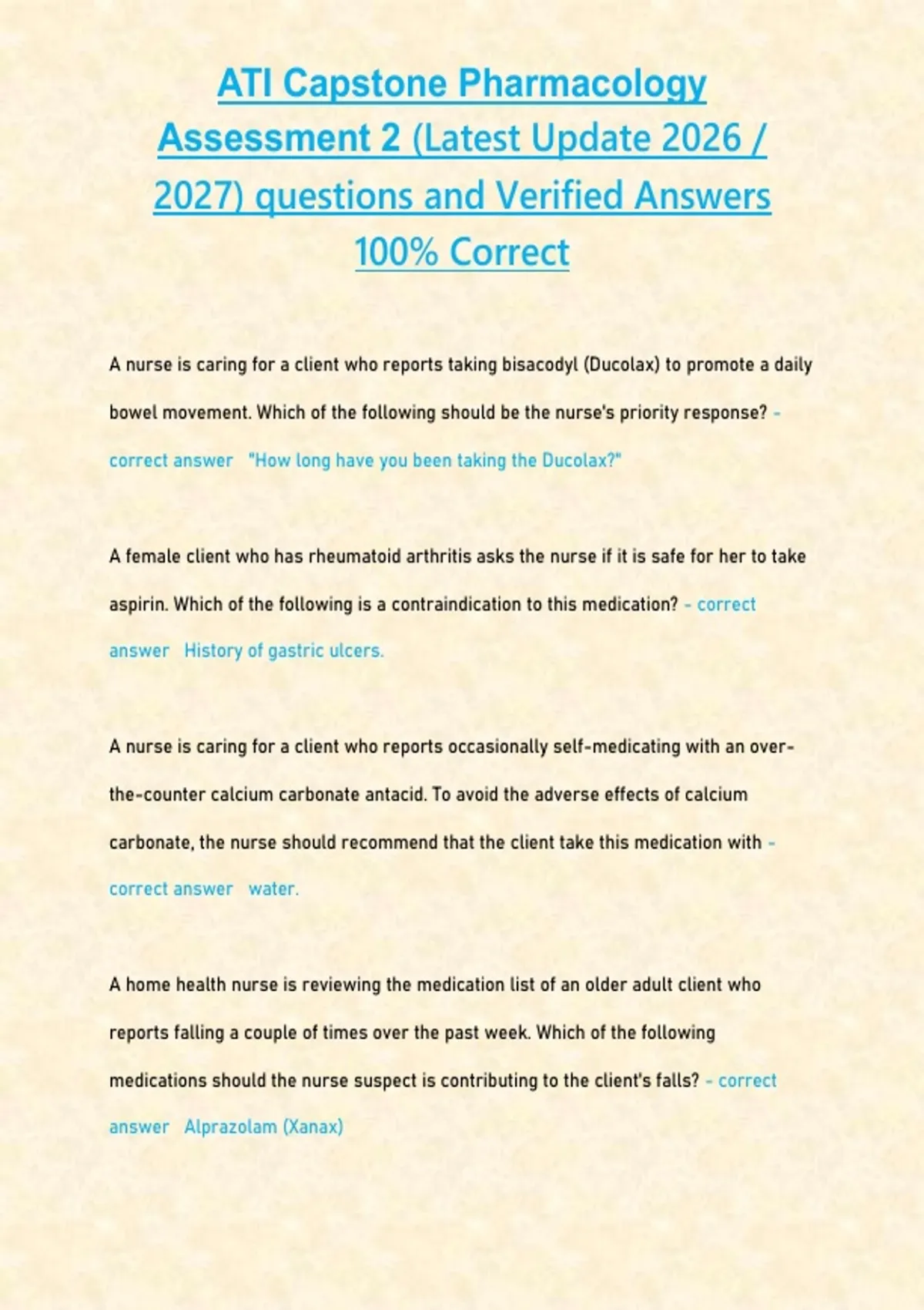 ATI Capstone Pharmacology (Latest Update 2026 2027 STUDY BUNDLE PACKAGE WITH SOLUTIONS) questions and Verified Answers 100- Correct