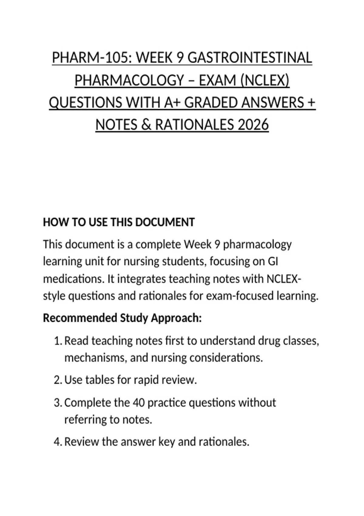 This document is a complete Week 9 pharmacology