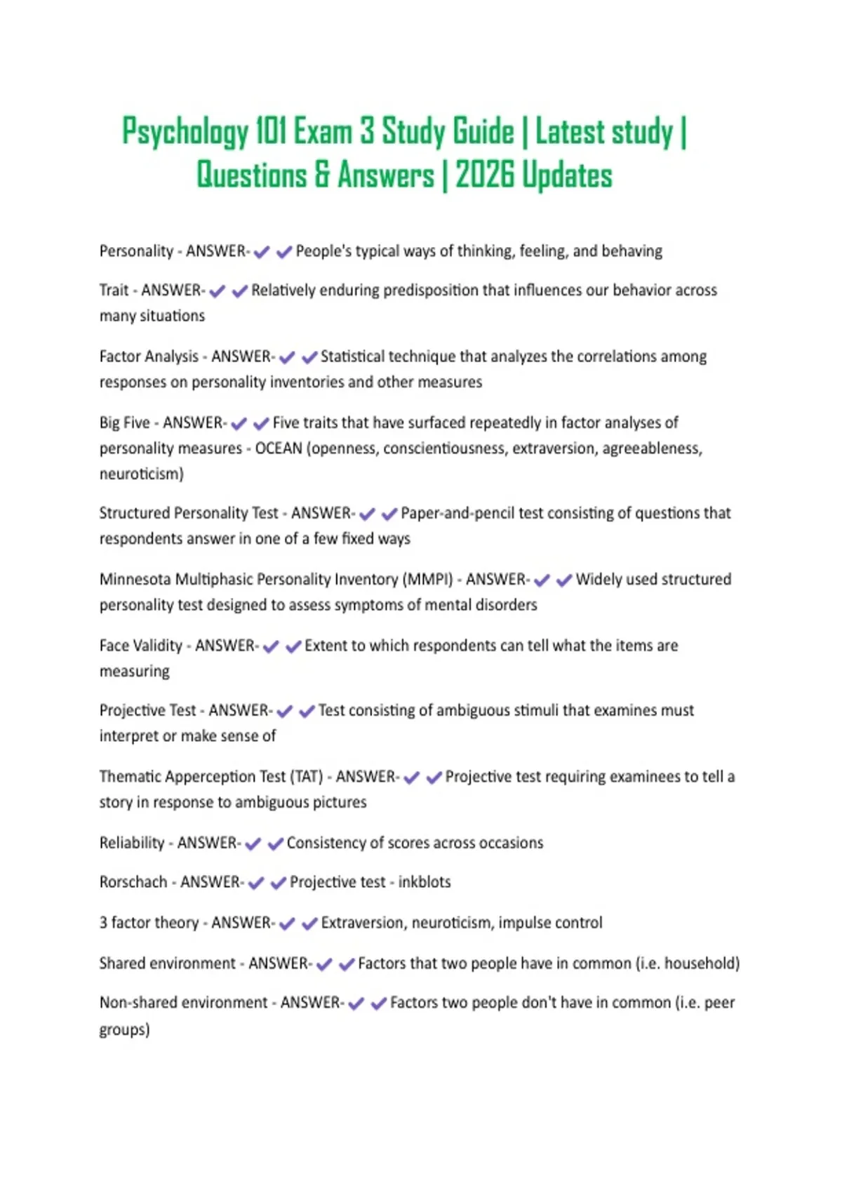 Structured Personality Test - ANSWER- Paper-and-pencil test consisting of questions that