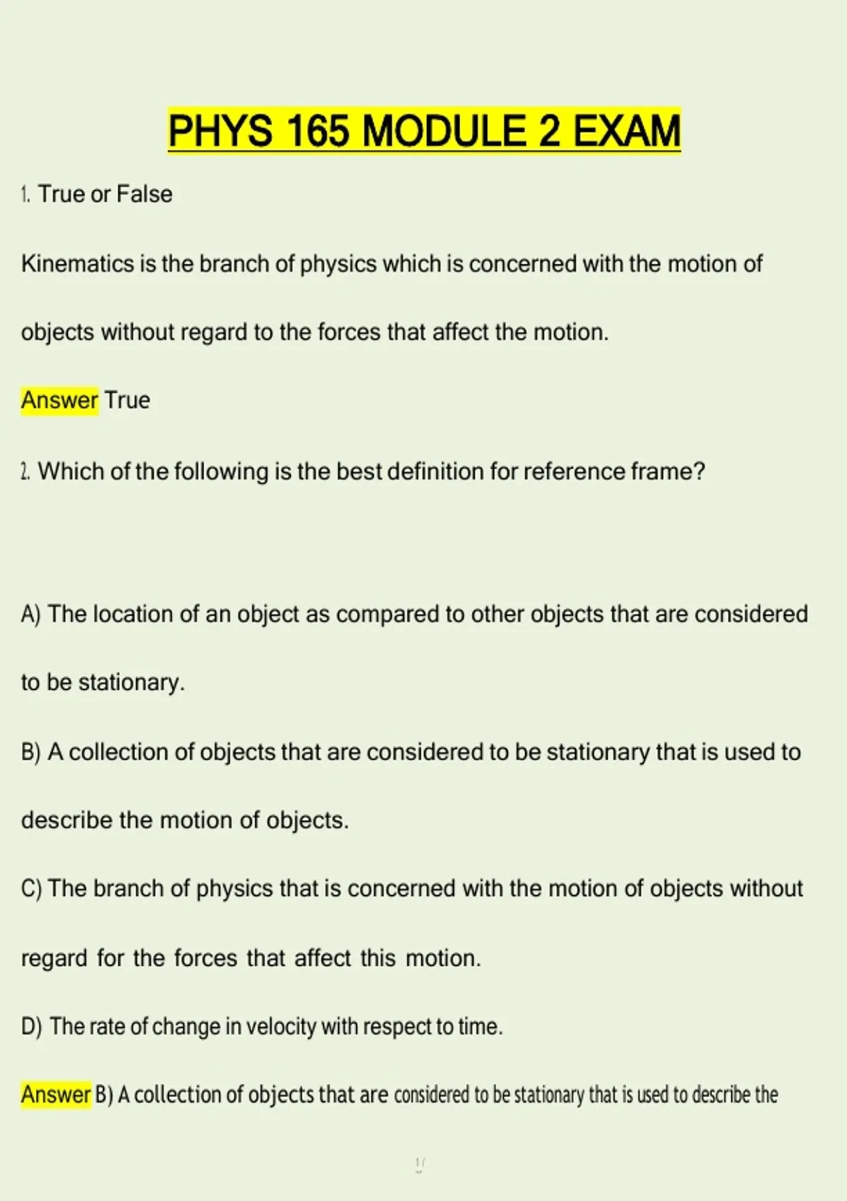 Answer B) A collection of objects that are considered to be stationary that is used to describe the