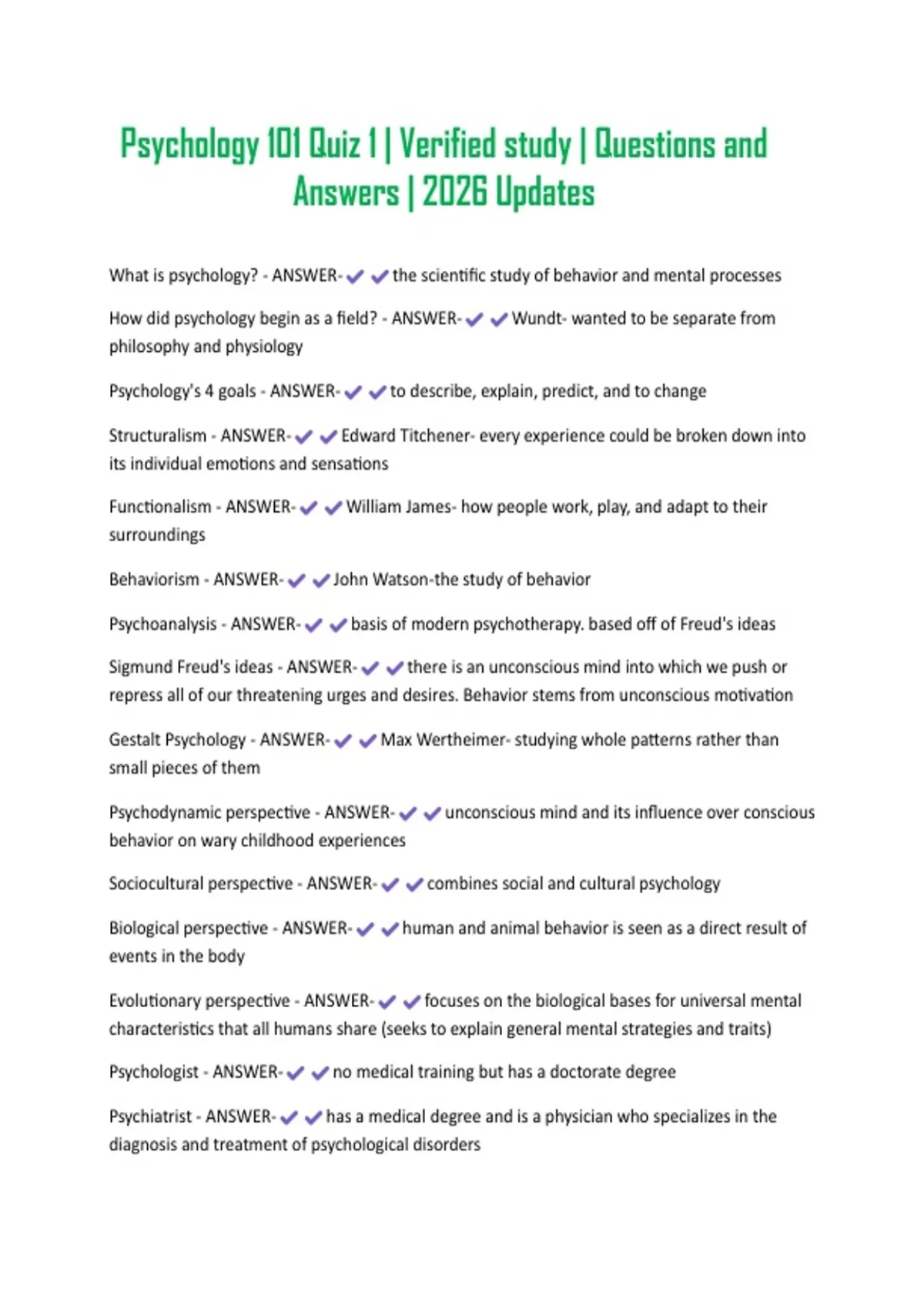 What is psychology? - ANSWER- the scientific study of behavior and mental processes