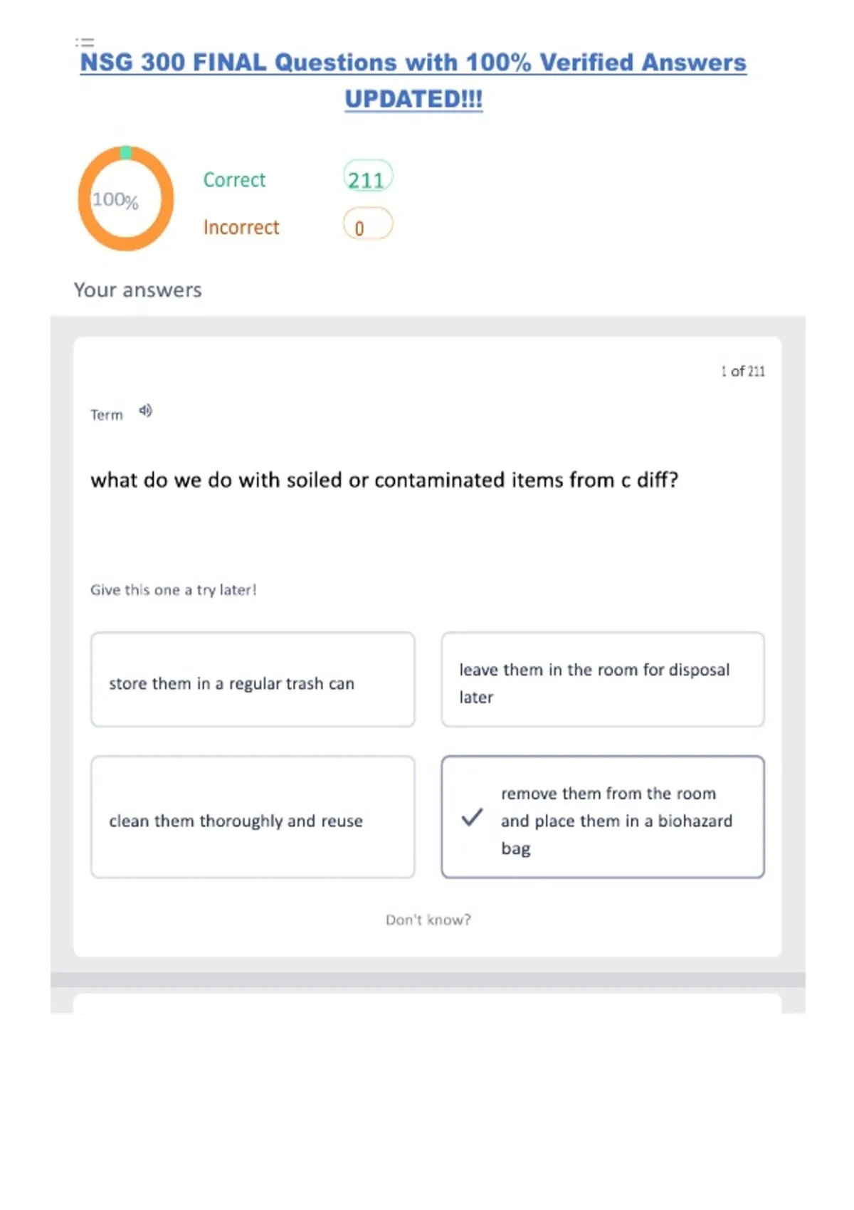 nsg 300 final questions with 100 verified answers
