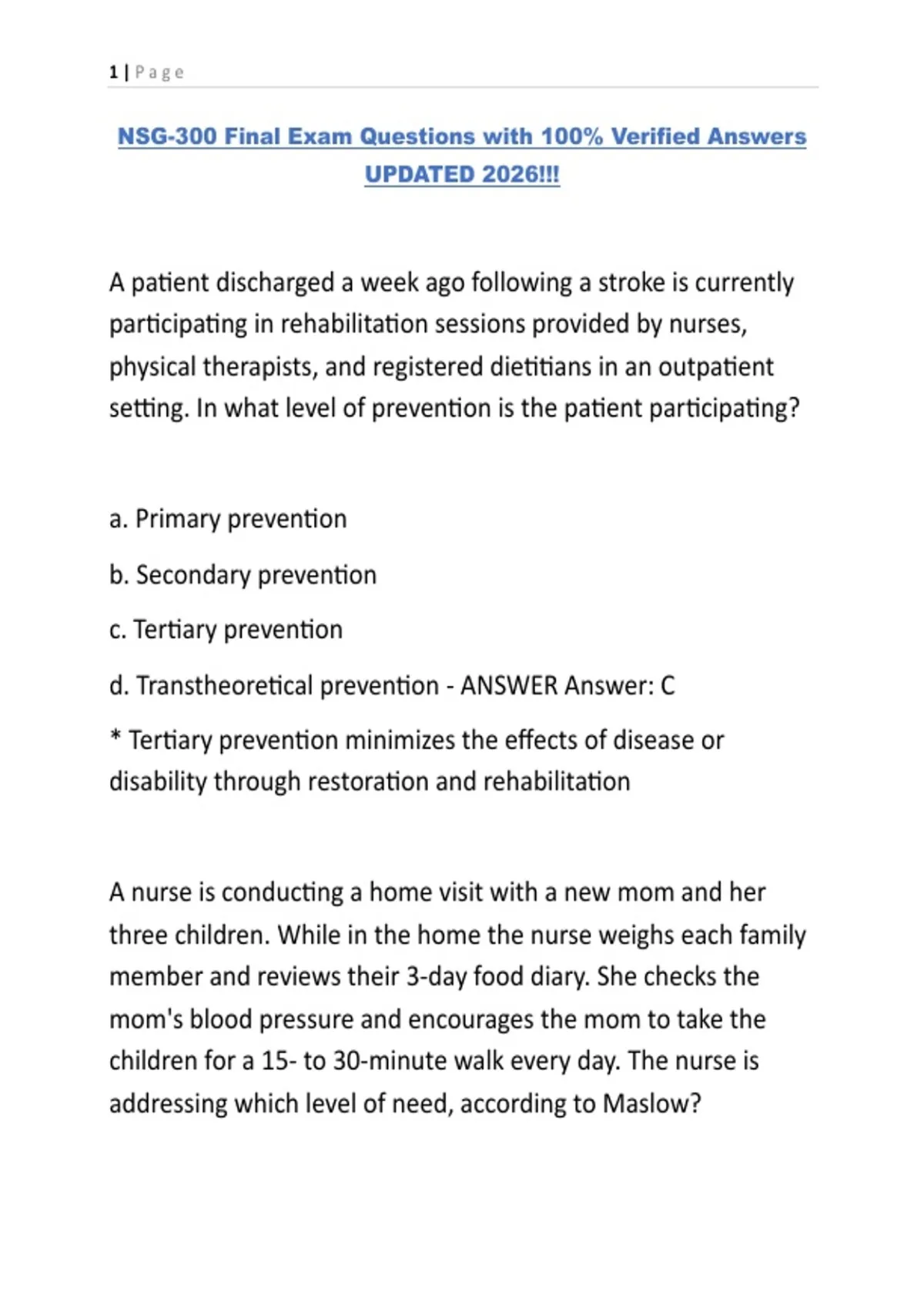 NSG-300 Final Exam Questions with 100% Verified Answers UPDATED 2026!!!.