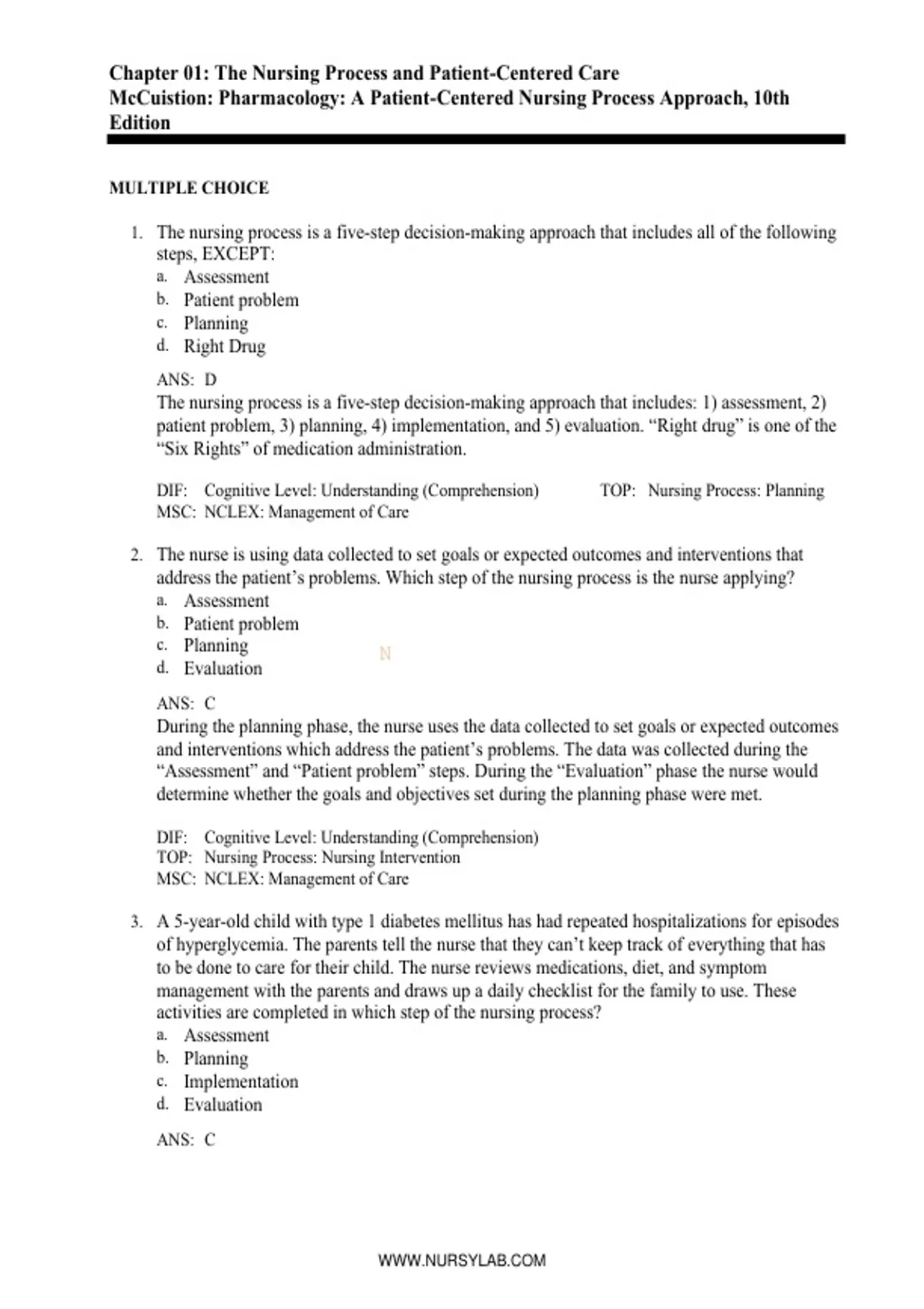 1. The nursing process is a five-step decision-making approach that includes all of the following