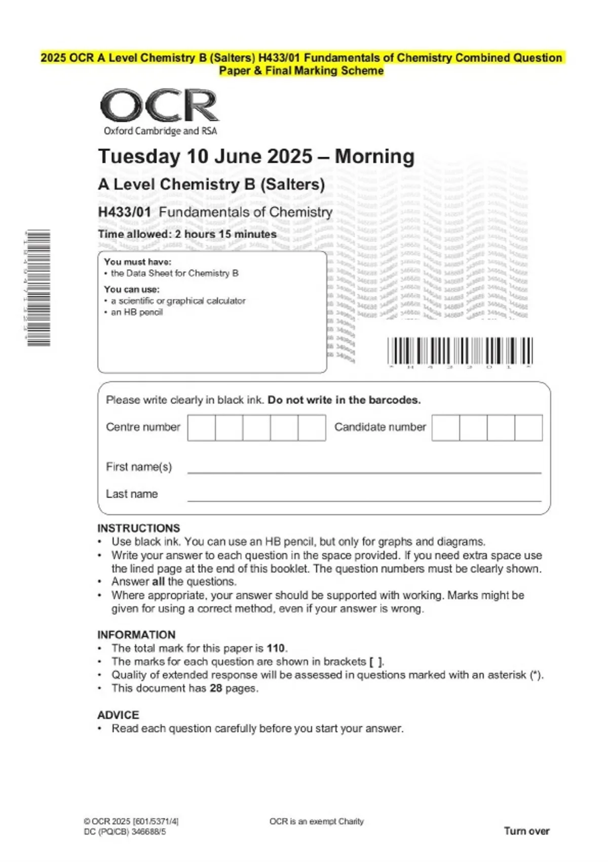 This document contains a comprehensive, combined, and integrated question paper with a complete final marking scheme of fundamentals of chemistry. It is well-structured and suitable for revision, exam preparation, continuous assessment tests, and academic reference. Ideal for students and educators seeking reliable and knowledgeable practice material.