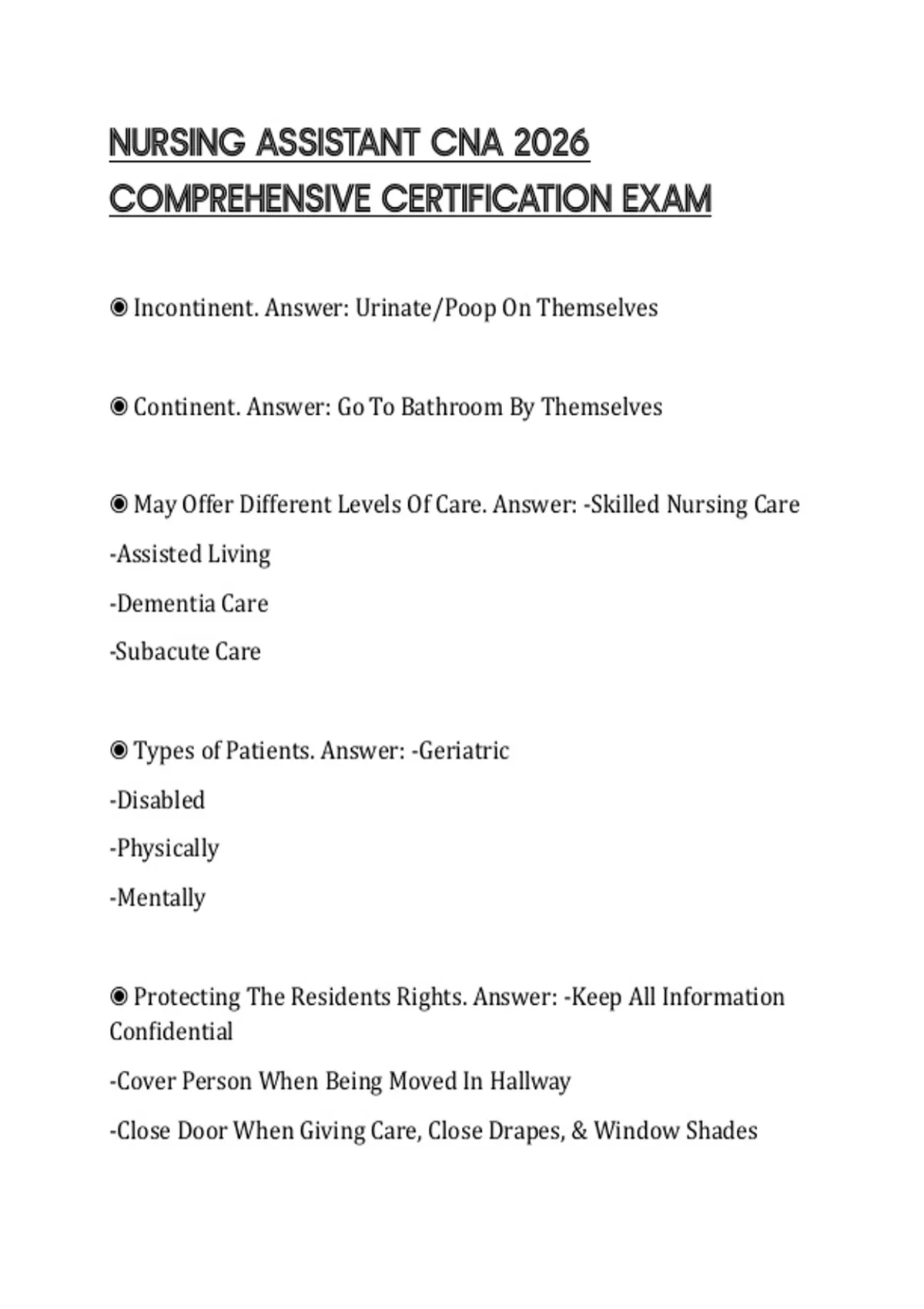 NURSING ASSISTANT CNA 2026 COMPREHENSIVE CERTIFICATION EXAM