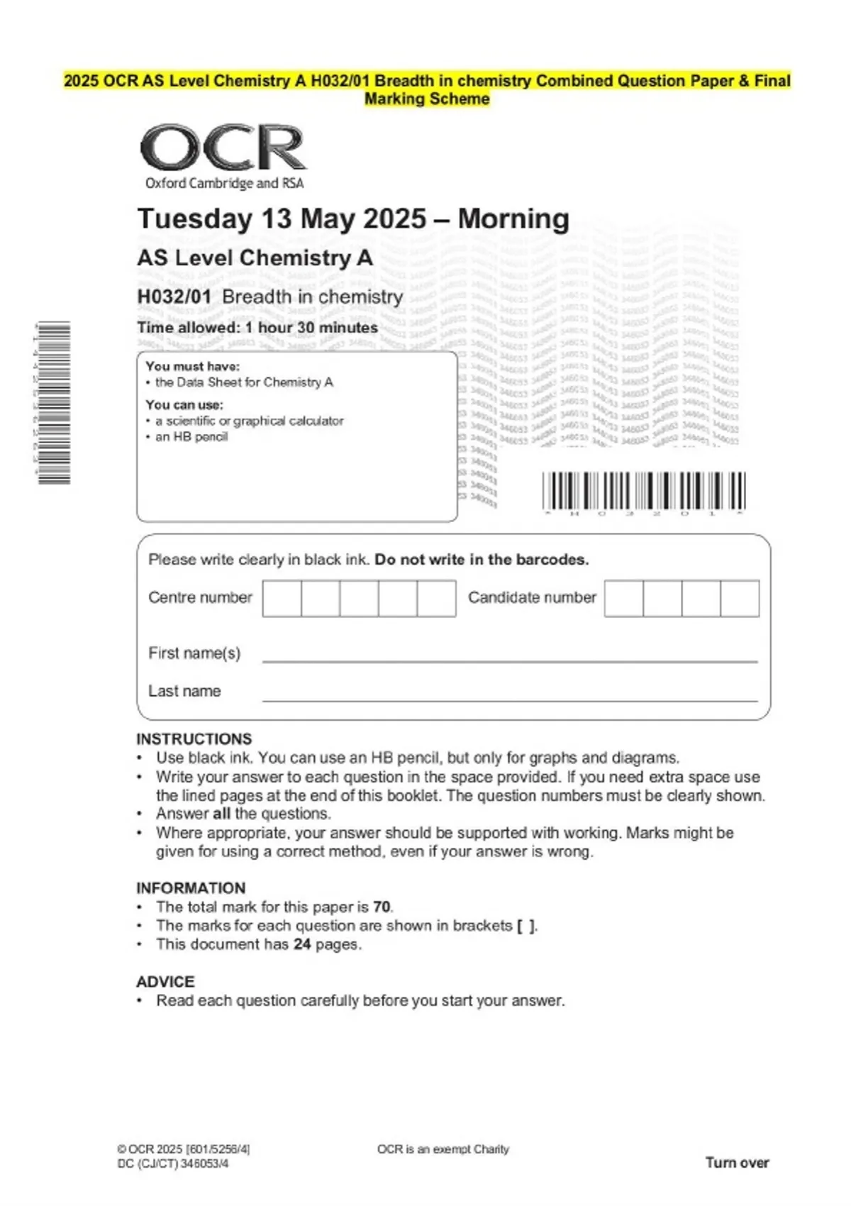 This document contains a comprehensive, combined, and integrated chemistry question paper with a complete final marking scheme, focusing on the Breadth of Chemistry topic. It is well structured and suitable for revision, exam preparation, continuous assessment tests, and academic reference. Ideal for students and educators seeking reliable practice material.