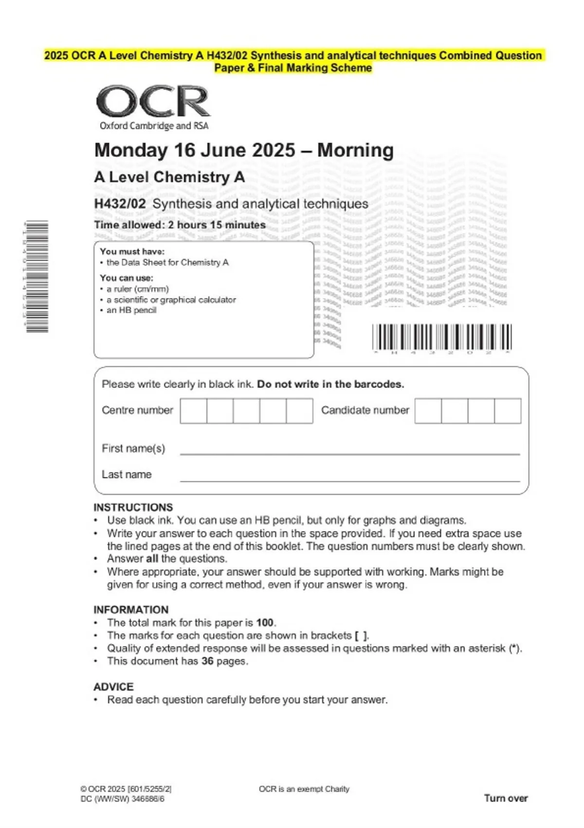 This document contains a comprehensive, combined, and integrated chemistry question paper with a complete final marking scheme, focusing on Synthesis and Analytical Techniques. It is well structured and suitable for revision, exam preparation, continuous assessment tests, and academic reference. Ideal for students and educators seeking reliable practice material.