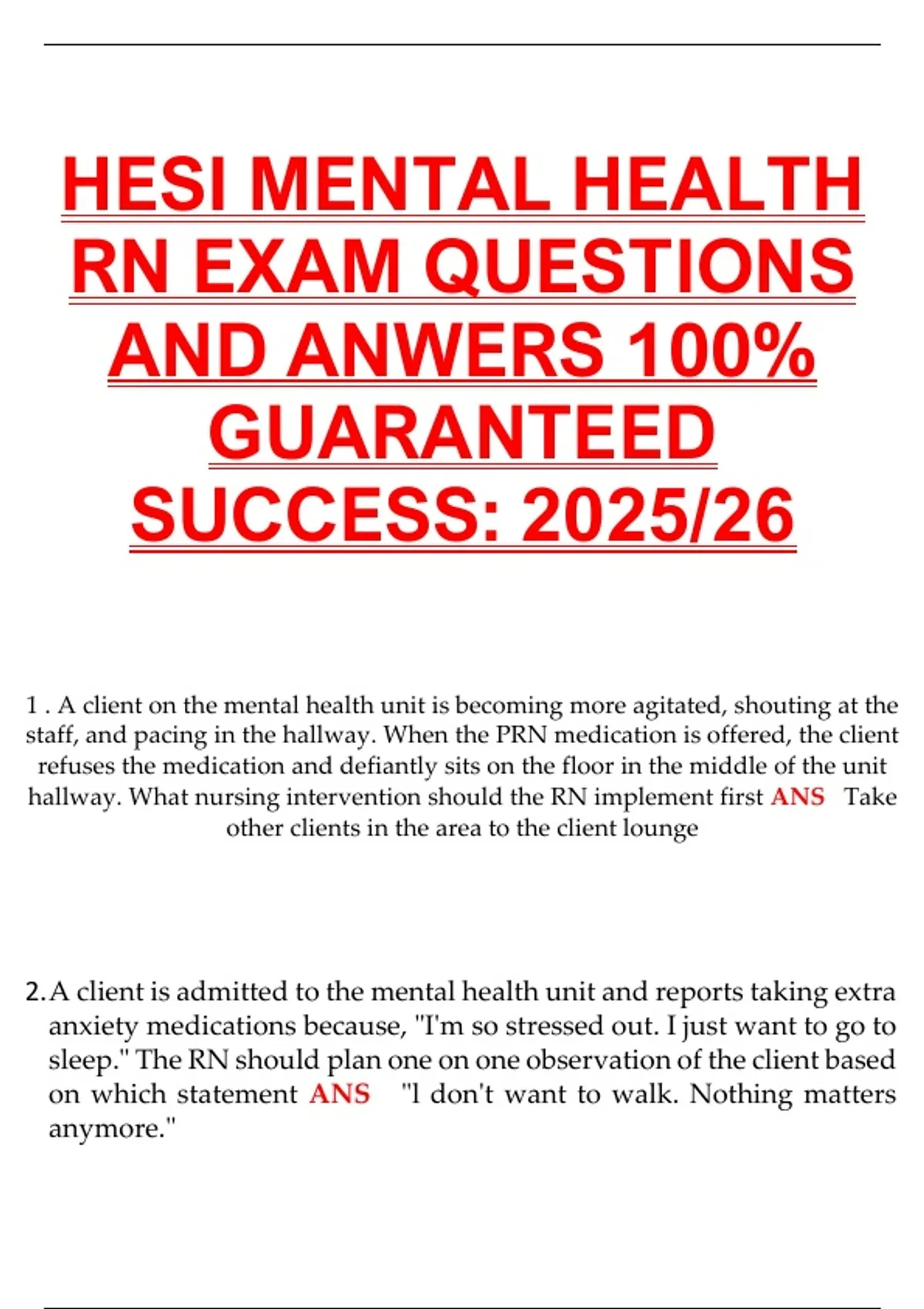 1 . A client on the mental health unit is becoming more agitated, shouting at the