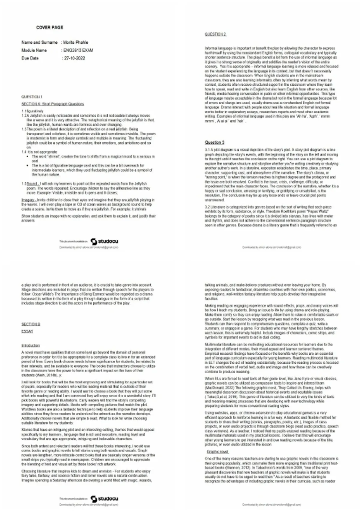 ENG2613 Final Exam 2022 Analyzing Literature and Language / Score 100% / Study Guide & Test Bank