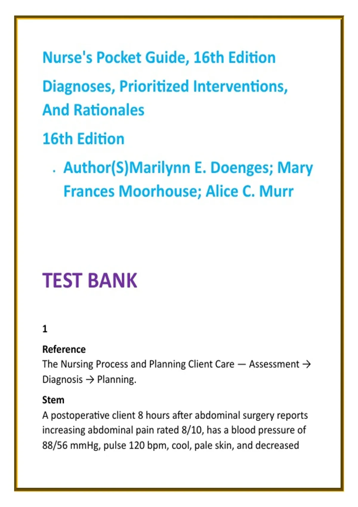 Pocket Guide (16th ed.). Chapter 1: The Nursing Process and