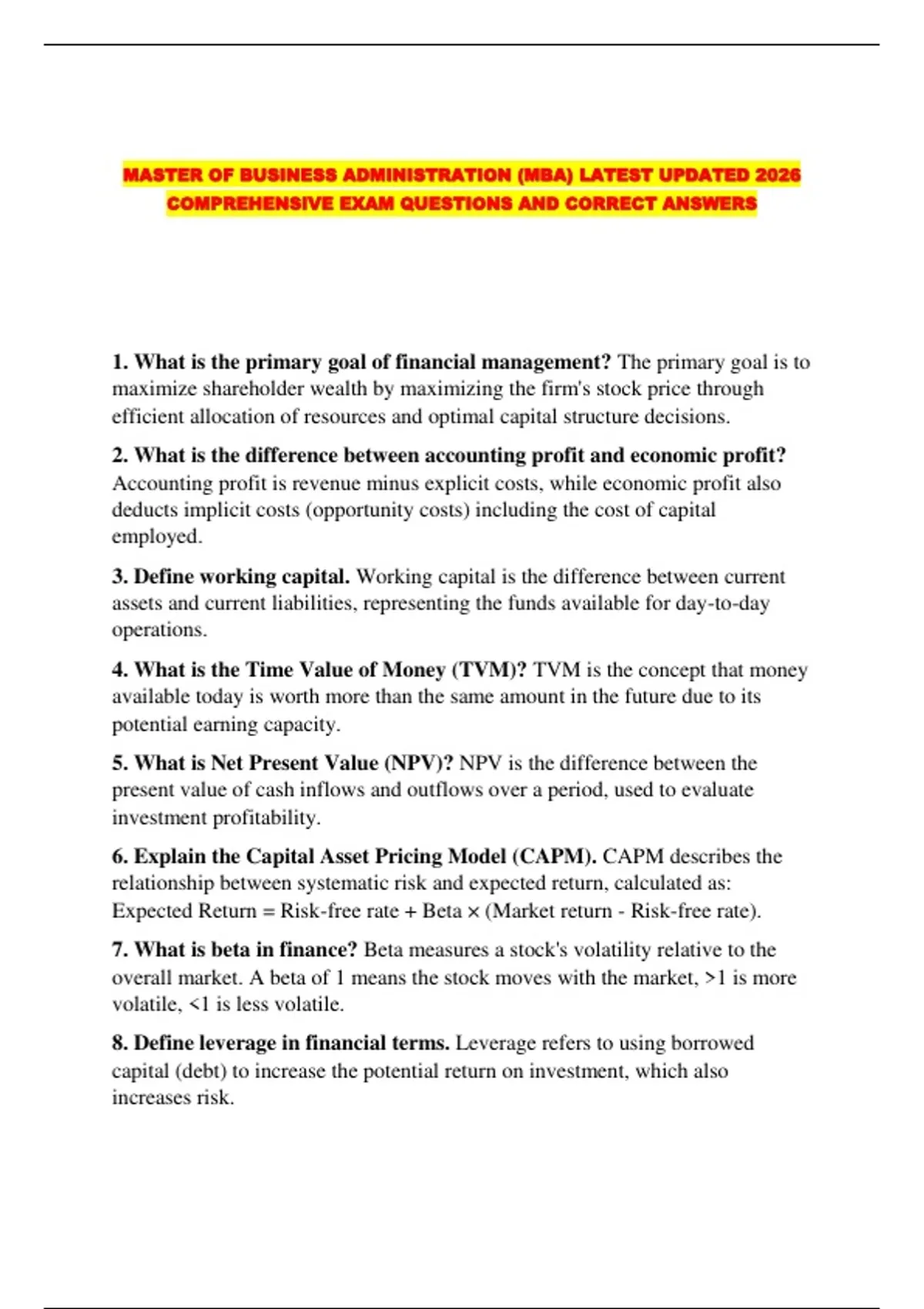 MASTER OF BUSINESS ADMINISTRATION (MBA) LATEST UPDATED 2026