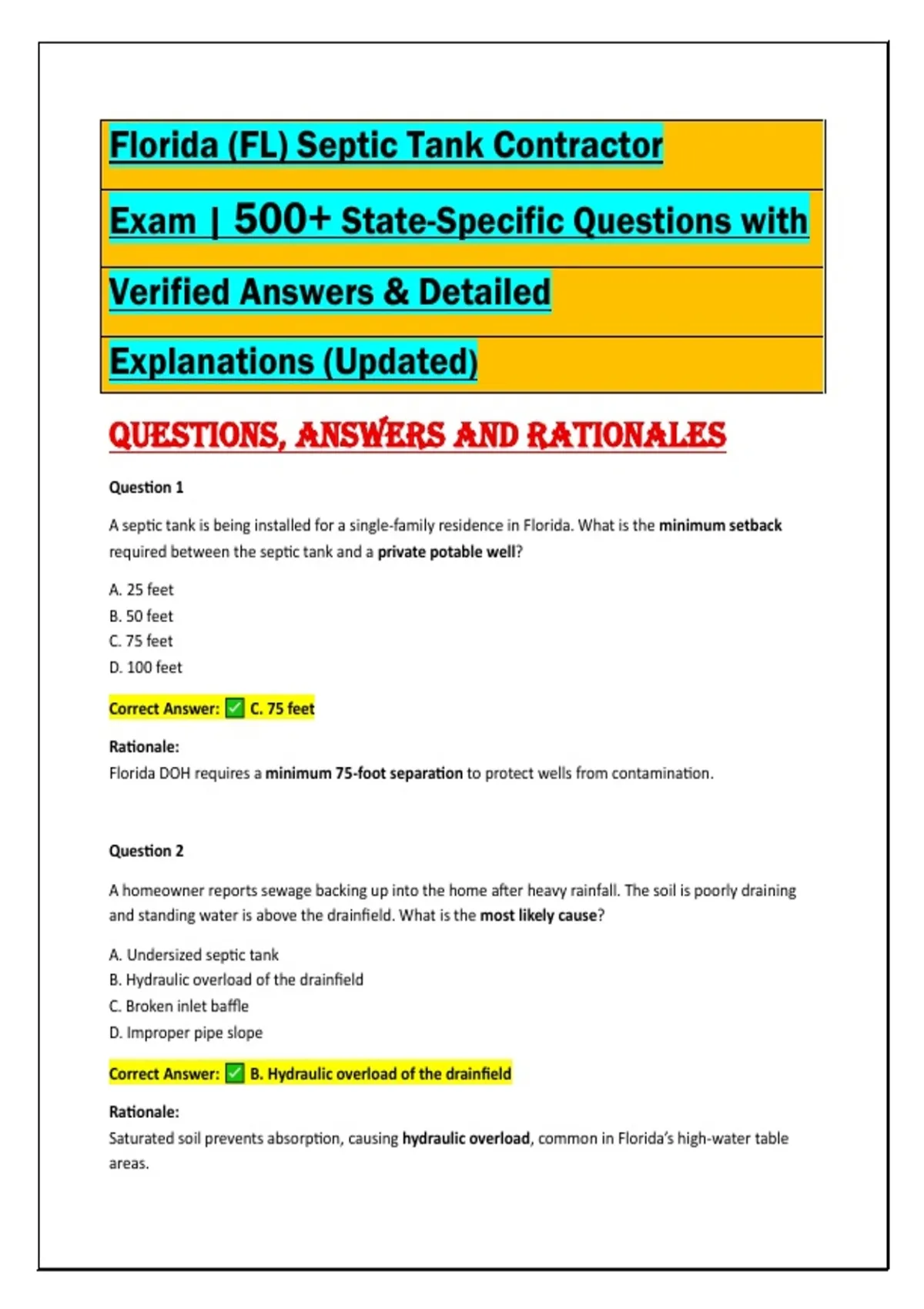 Florida DOH requires a minimum 75-foot separation to protect wells from contamination.