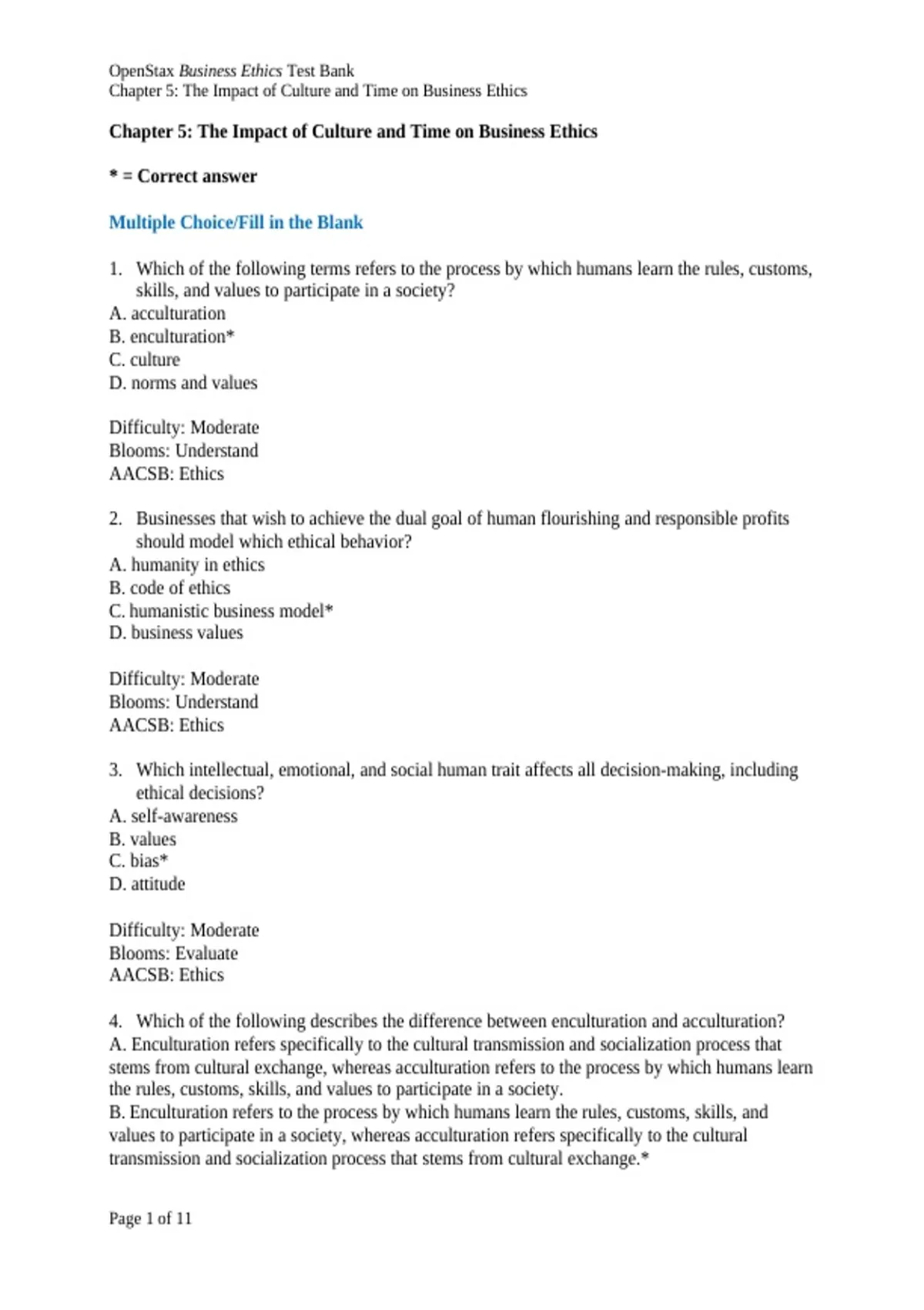, OpenStax Business Ethics Test Bank
