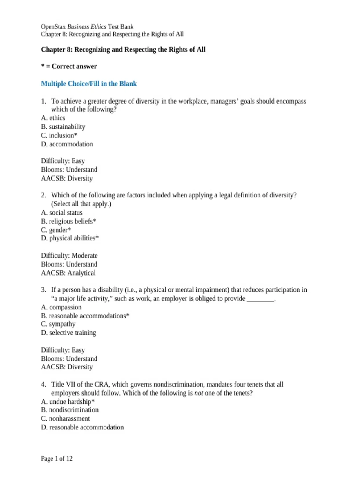 , OpenStax Business Ethics Test Bank