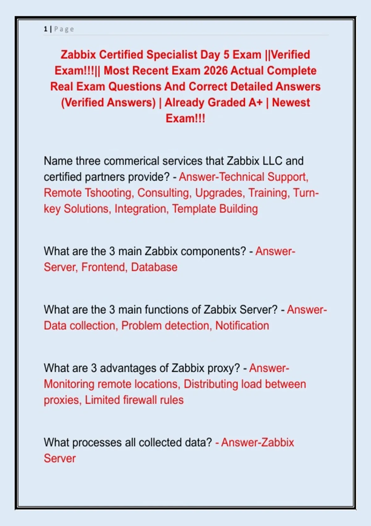 Zabbix Certified Specialist Day 5 Exam ||Verified
