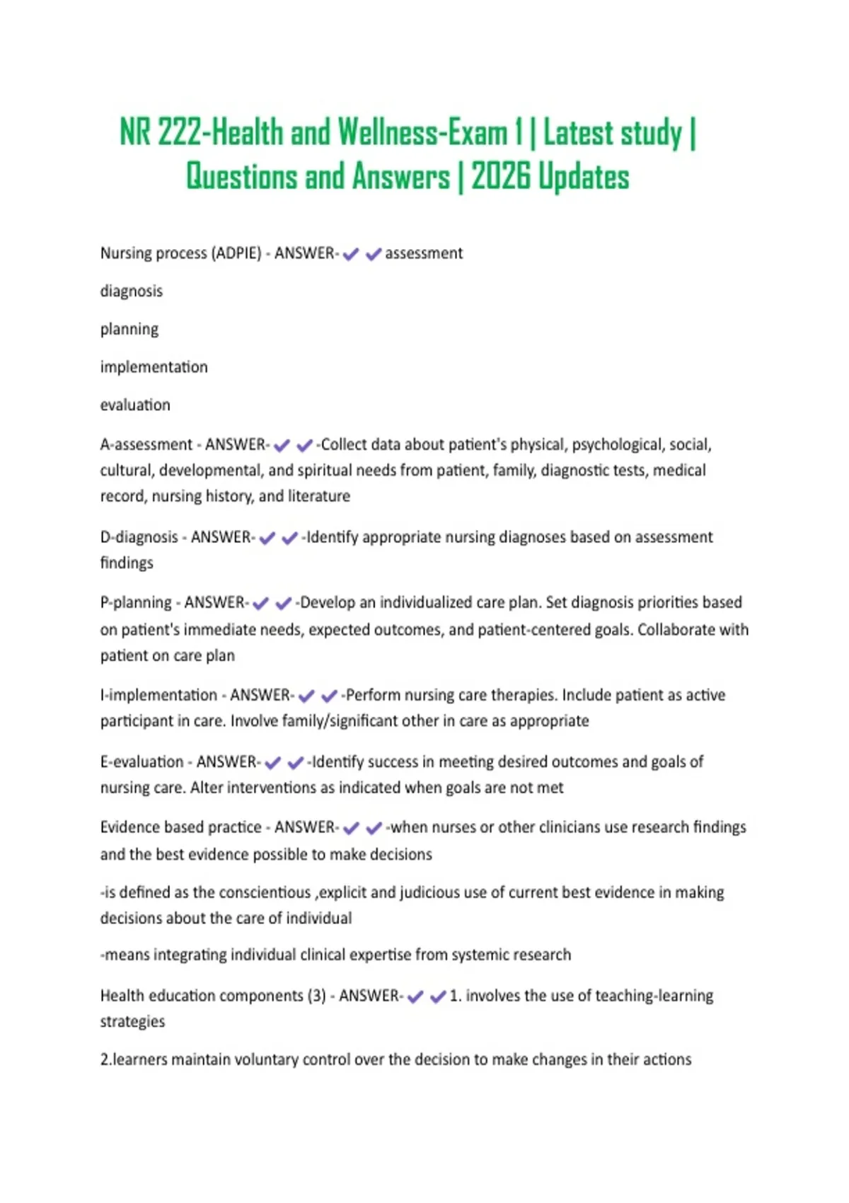 D-diagnosis - ANSWER- -Identify appropriate nursing diagnoses based on assessment