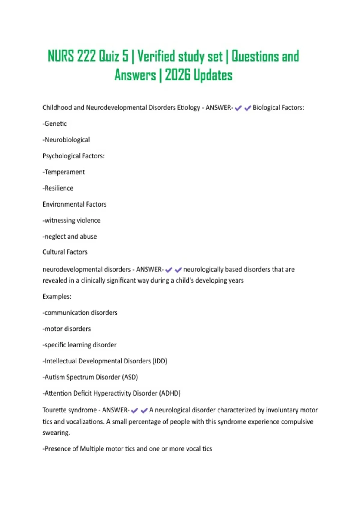 Childhood and Neurodevelopmental Disorders Etiology - ANSWER- Biological Factors: