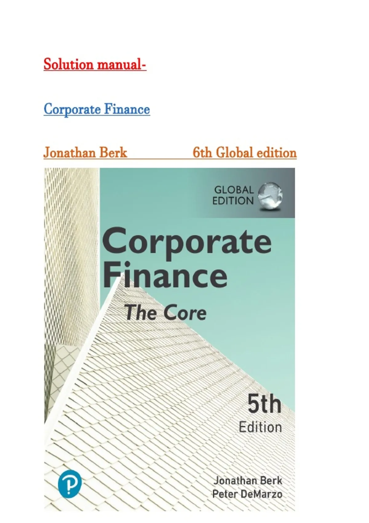 Solutions Manual For Corporate Finance 6th Edition (Global Edition) By Jonathan Berk, Peter DeMarzo (All Chapters, 100% Original Verified, A+ Grade)