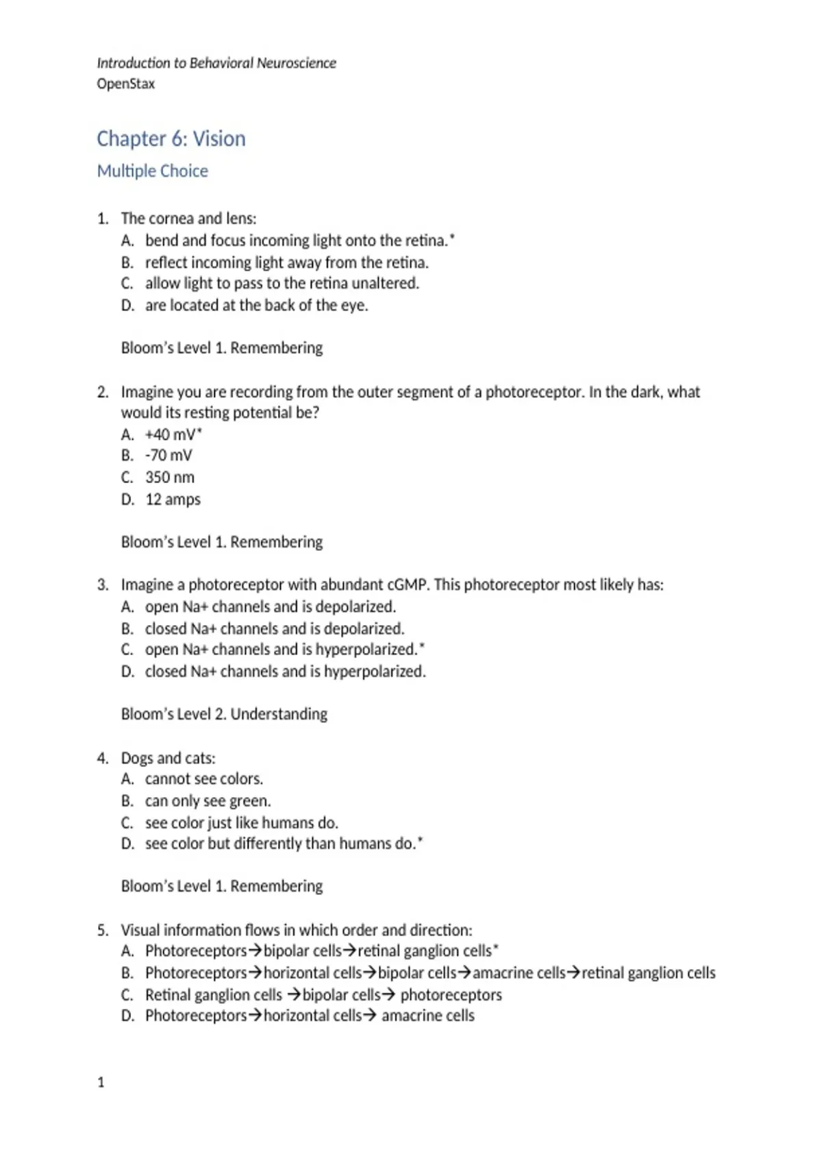 Introduction Behavioral Neuroscience Test Bank Chapter 6 Complete Exam Prep Resource 2025/ 2026