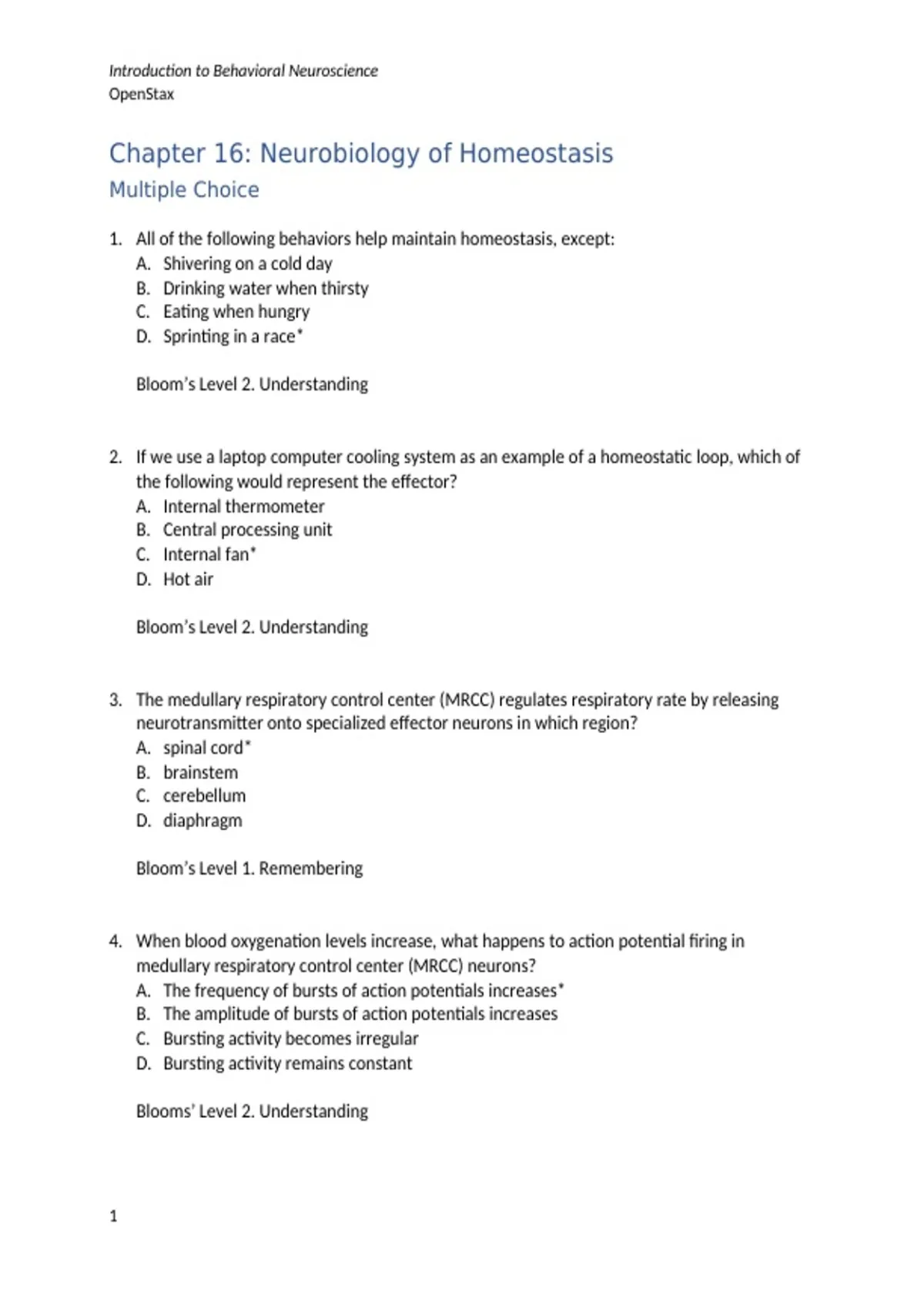 Introduction Behavioral Neuroscience Test Bank Chapter 16 Complete Exam Prep Resource 2025/ 2026