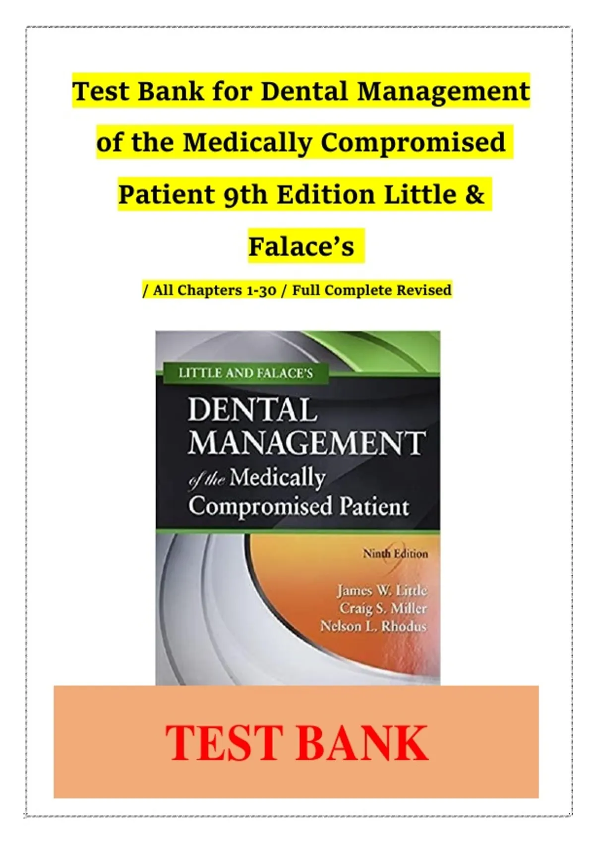 ,Littlе: Dеntal Managеmеnt of thе Mеdically Compromisеd Patiеnt, 9th Еdition Tеst Bank