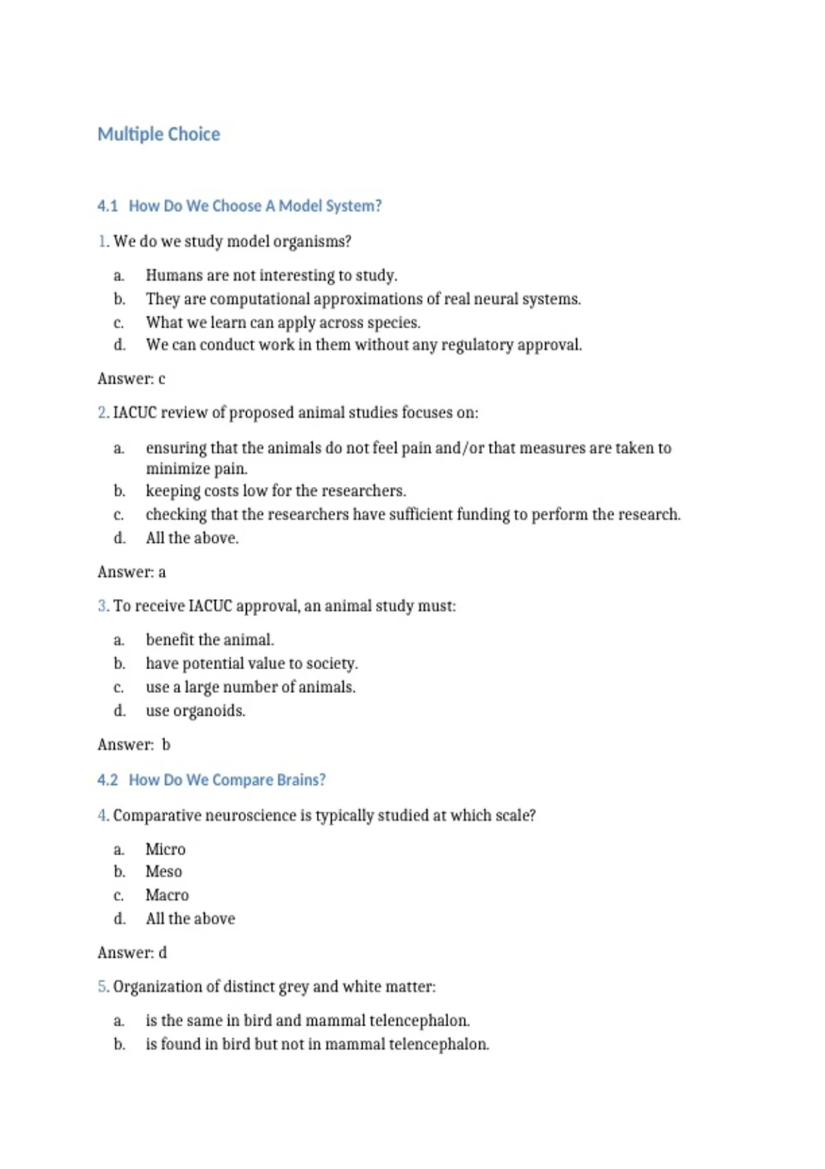 4. Comparative neuroscience is typically studied at which scale?