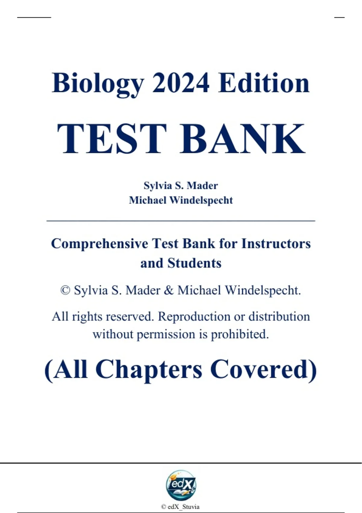 This test bank corresponds to the 2024 edition of Biology by Sylvia S. Mader and Michael
