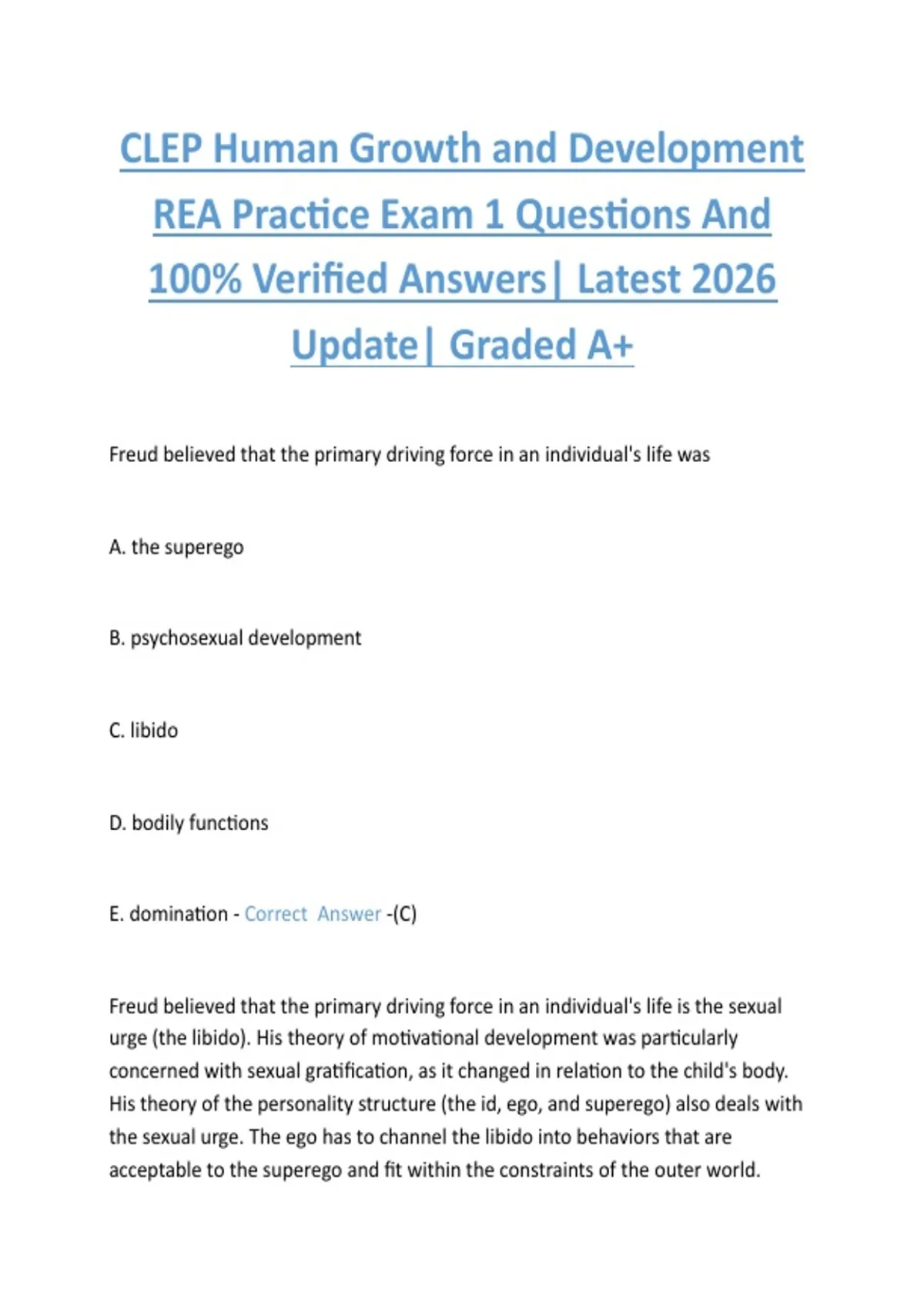 CLEP Human Growth and Development REA Practice Exam 1 Questions And 100% Verified Answers| Latest 2026 Update| Graded A+