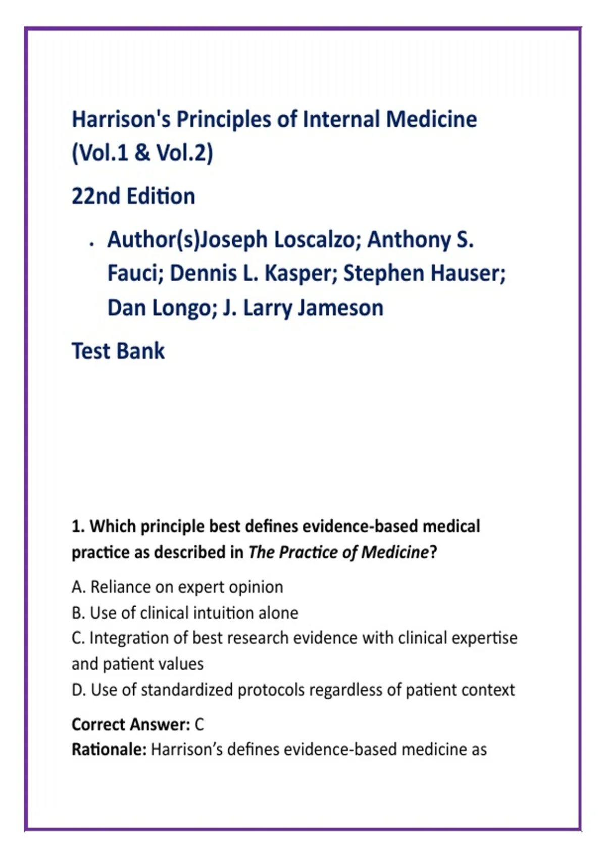Rationale: Harrison’s defines evidence-based medicine as