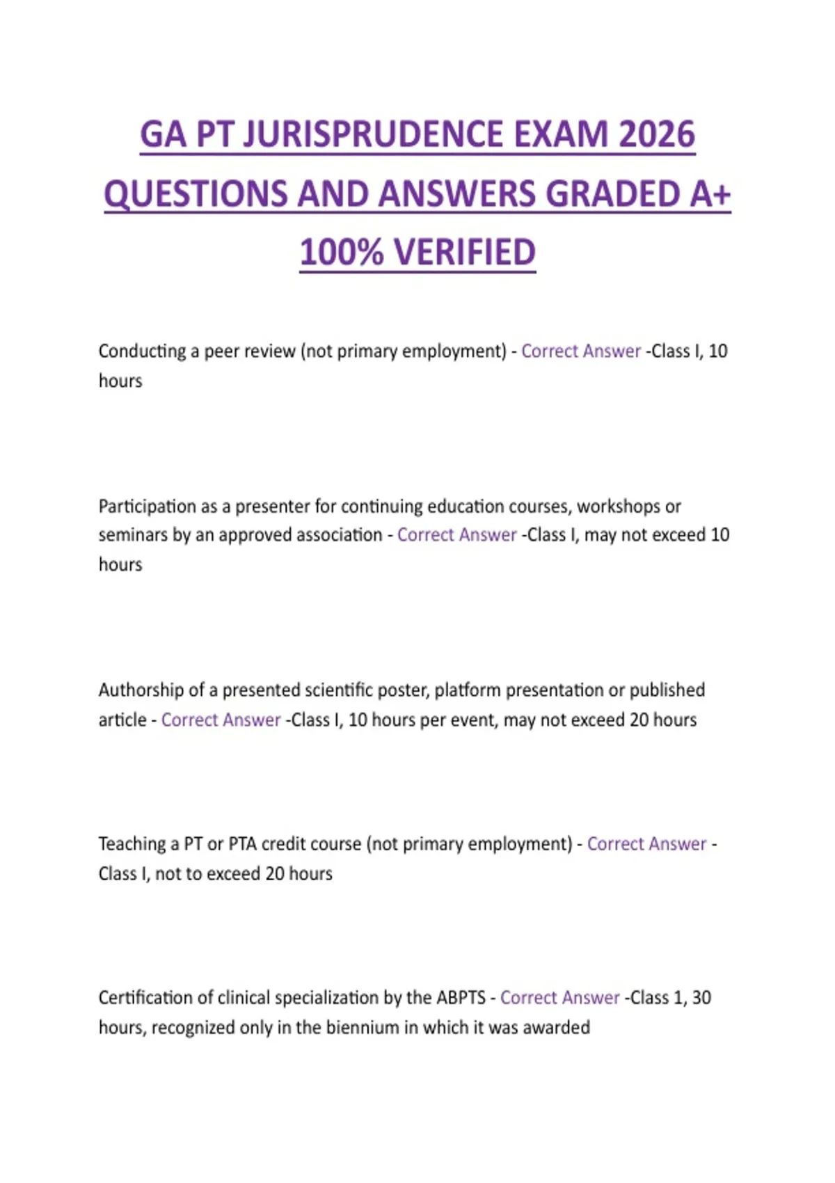 GA PT JURISPRUDENCE EXAM 2026 QUESTIONS AND ANSWERS GRADED A+ 100% VERIFIED