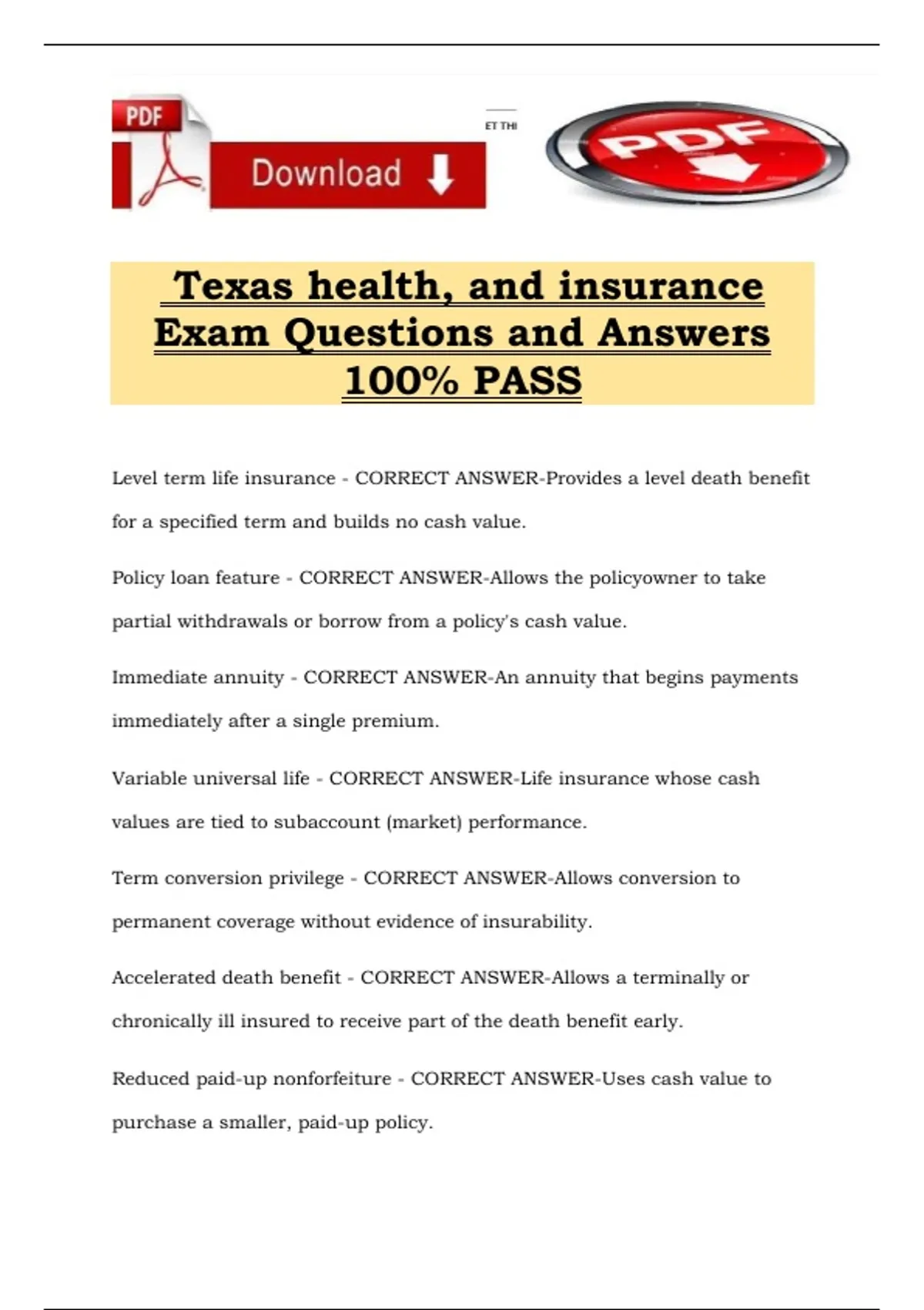 Texas health, and insurance Exam Questions and Answers 100% PASS