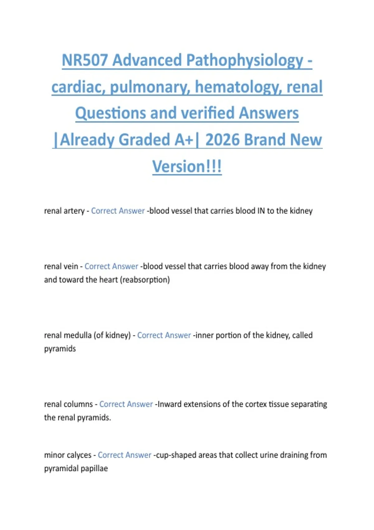 renal artery - Correct Answer -blood vessel that carries blood IN to the kidney