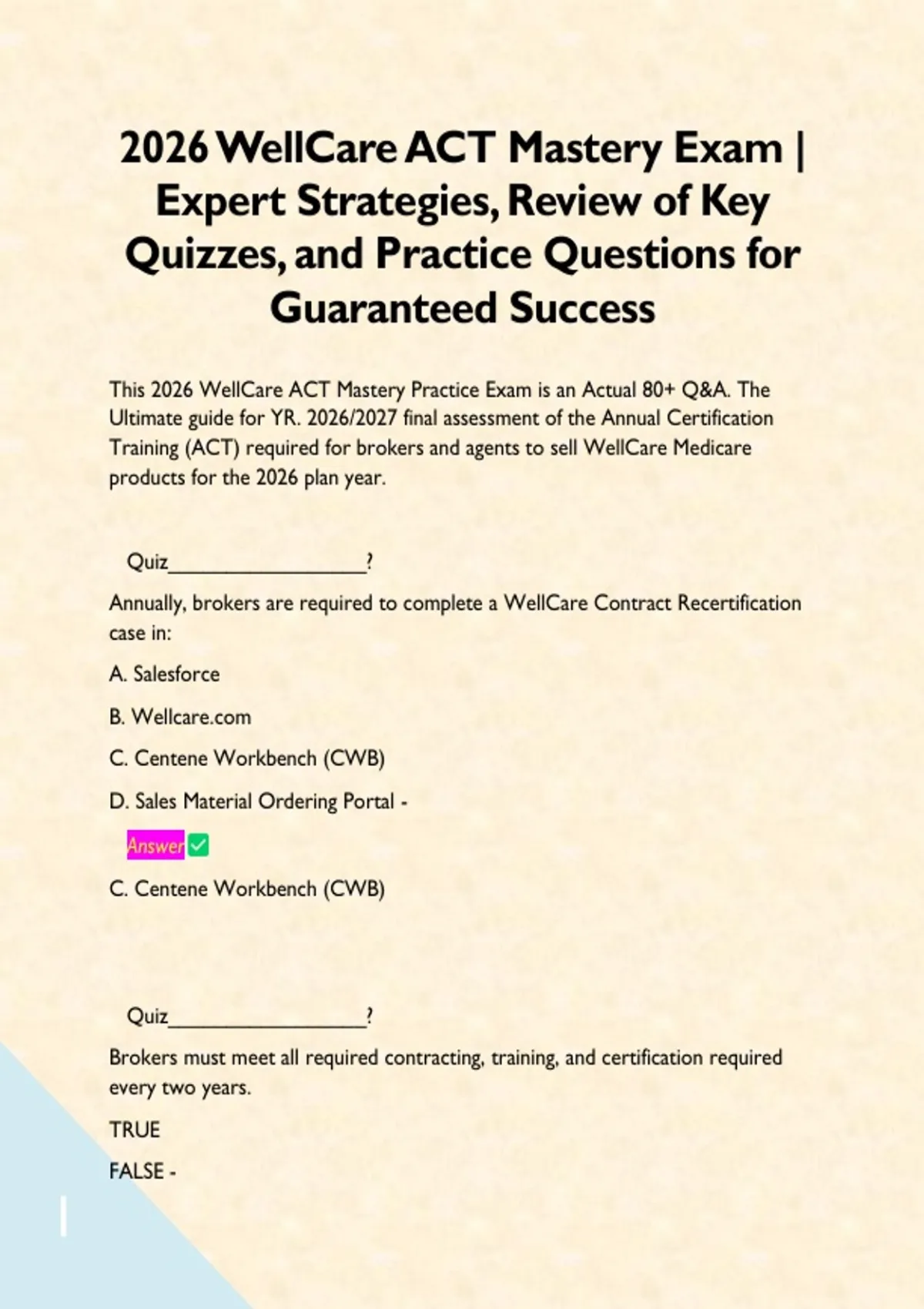 This 2026 WellCare ACT Mastery Practice Exam is an Actual 80+ Q&A. The