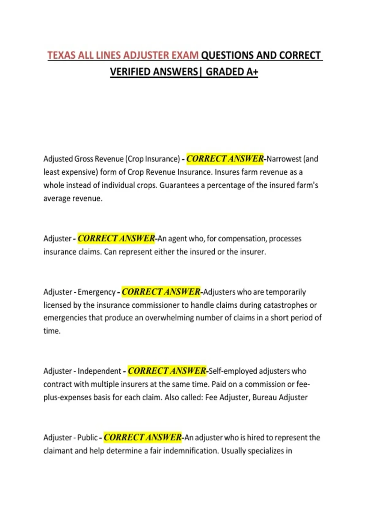 Adjuster - Independent - CORRECT ANSWER-Self-employed adjusters who