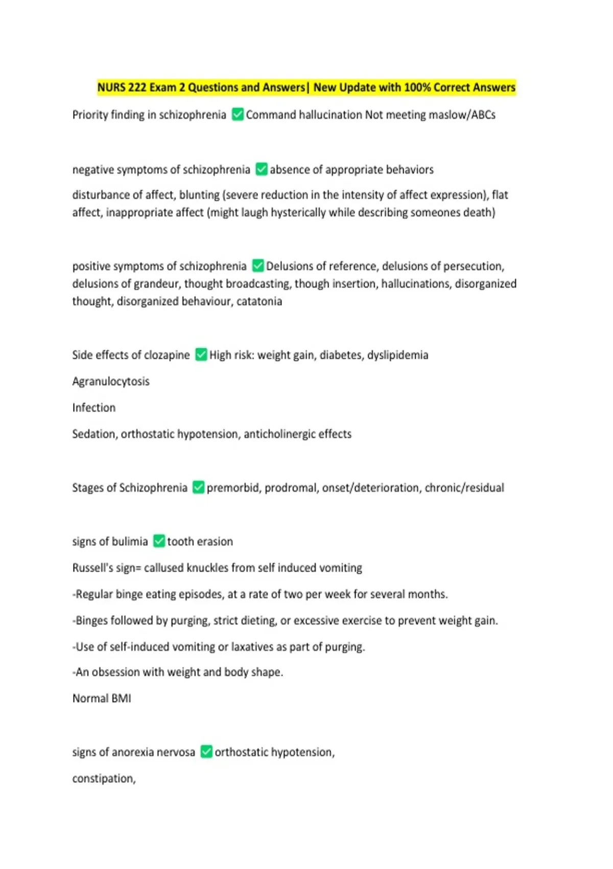 NURS 222 Exam 2 Questions and Answers| New Update with 100% Correct Answers