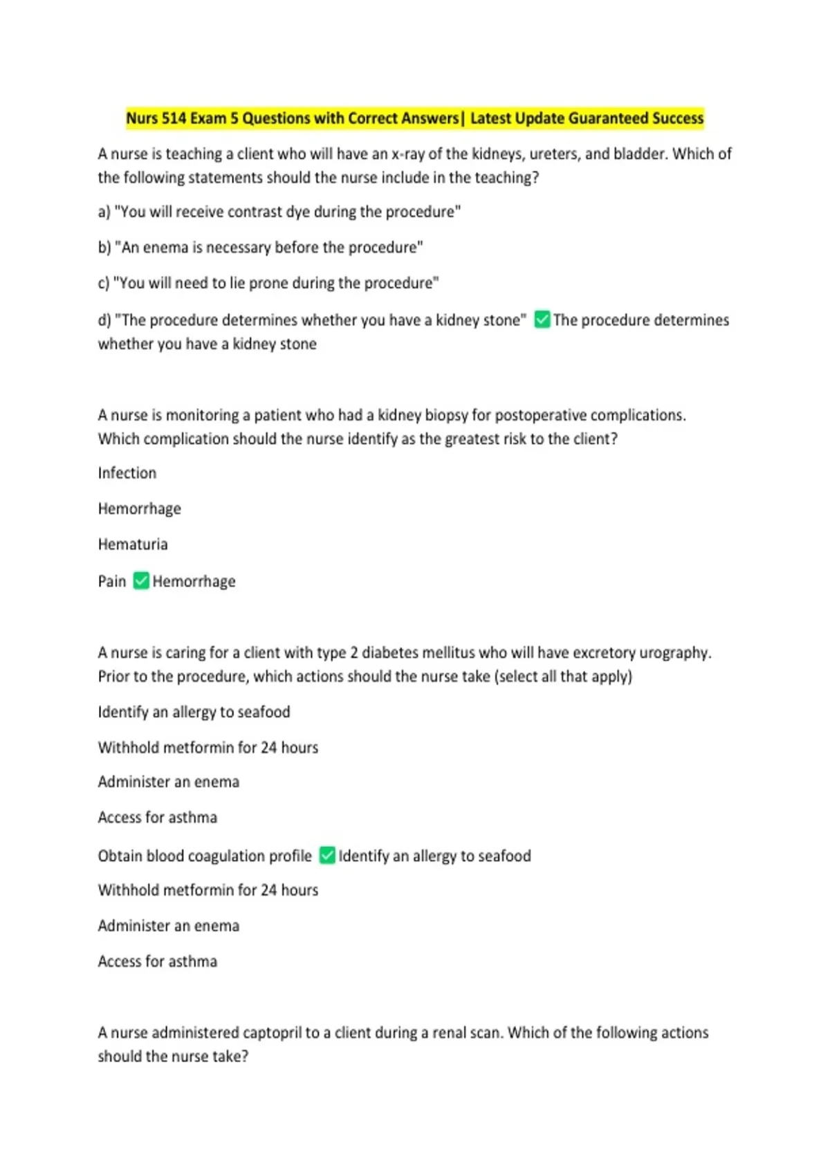 Nurs 514 Exam 5 Questions with Correct Answers| Latest Update Guaranteed Success