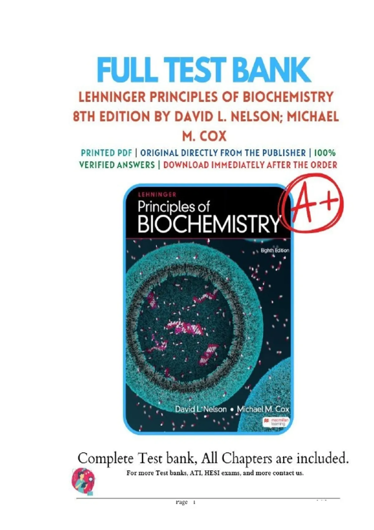 , Test Bank: Lehninger Principles of Biochemistry, 8th