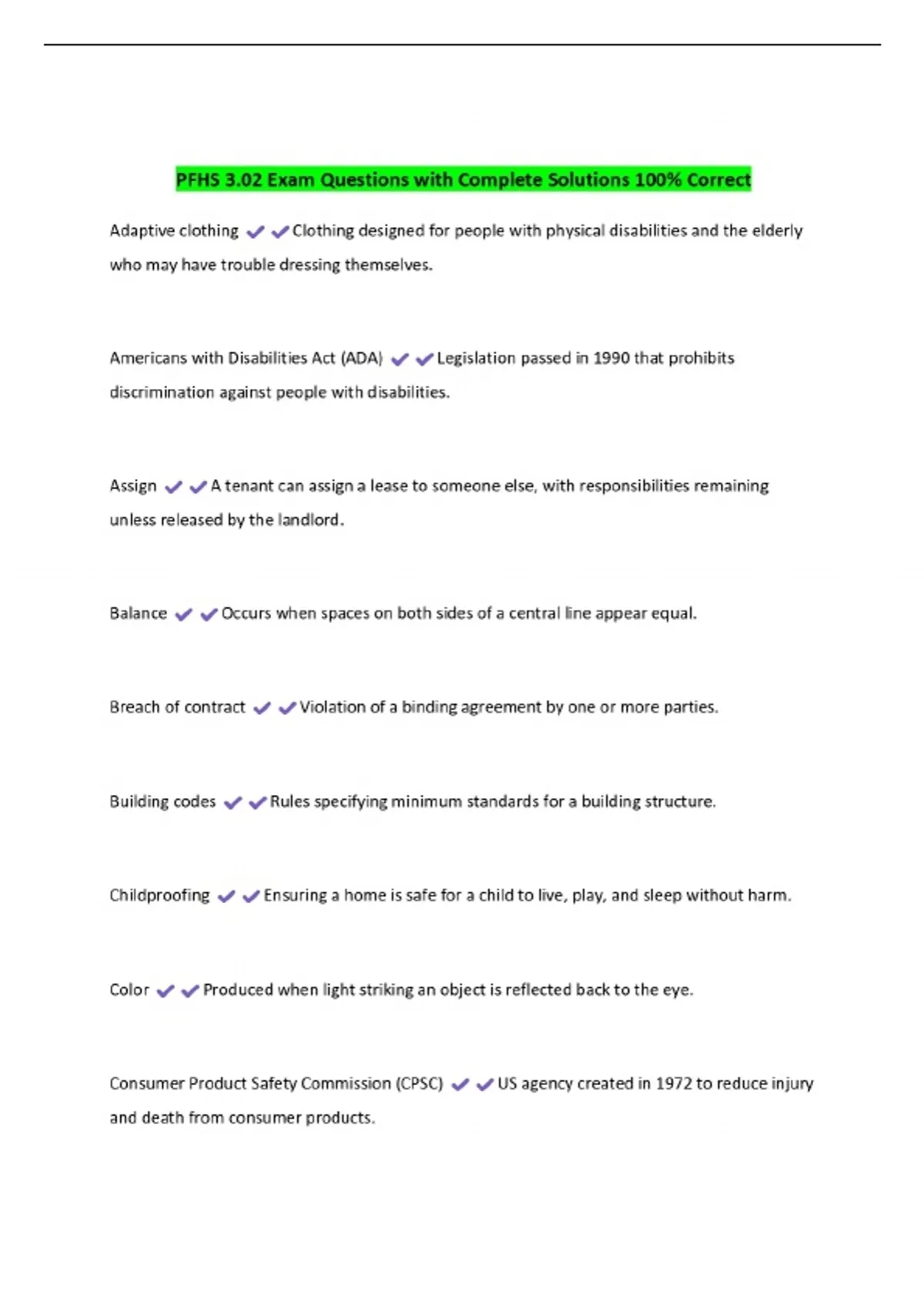 PFHS 3.02 Exam Questions with Complete Solutions 100% Correct