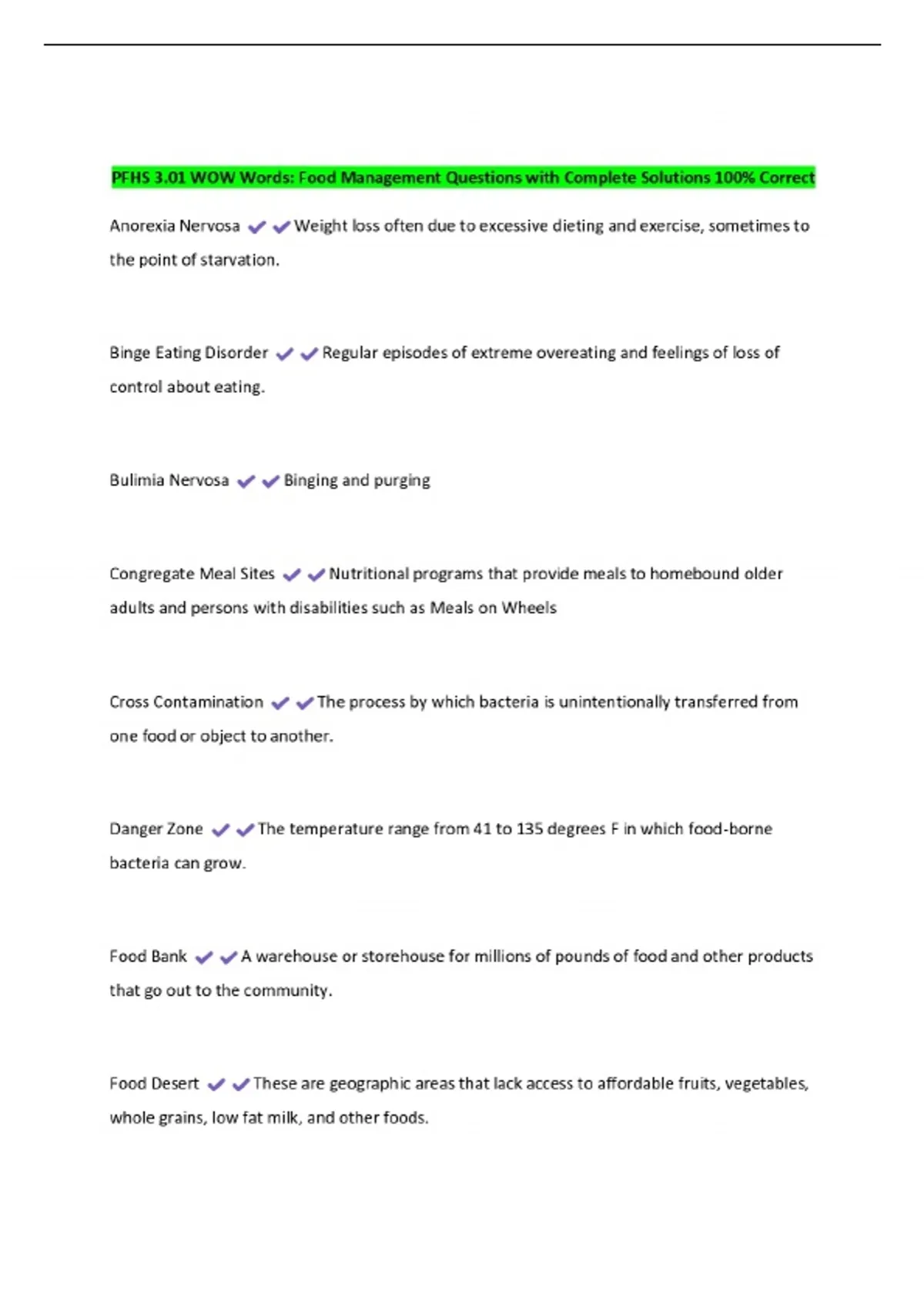 PFHS 3.01 WOW Words: Food Management Questions with Complete Solutions
